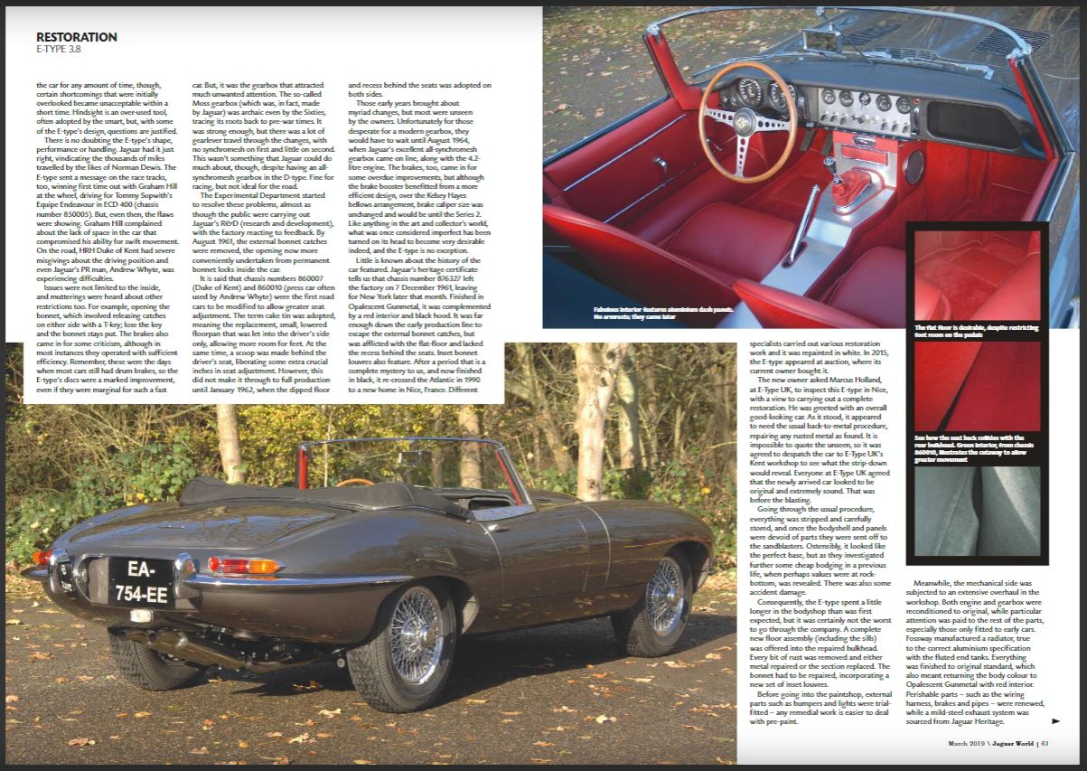 In this months Jaguar World, editor and close friend of E-Type UK , Jim Patten reviews our recently completed Series 1 flat floor roadster, part of this issues 'Early E-Type' feature. It may be winter but that didn't stop Ian dropping the hood and going for a blast in our reliable and high-performance Series 3, finishing the day with a large grin ear to ear.