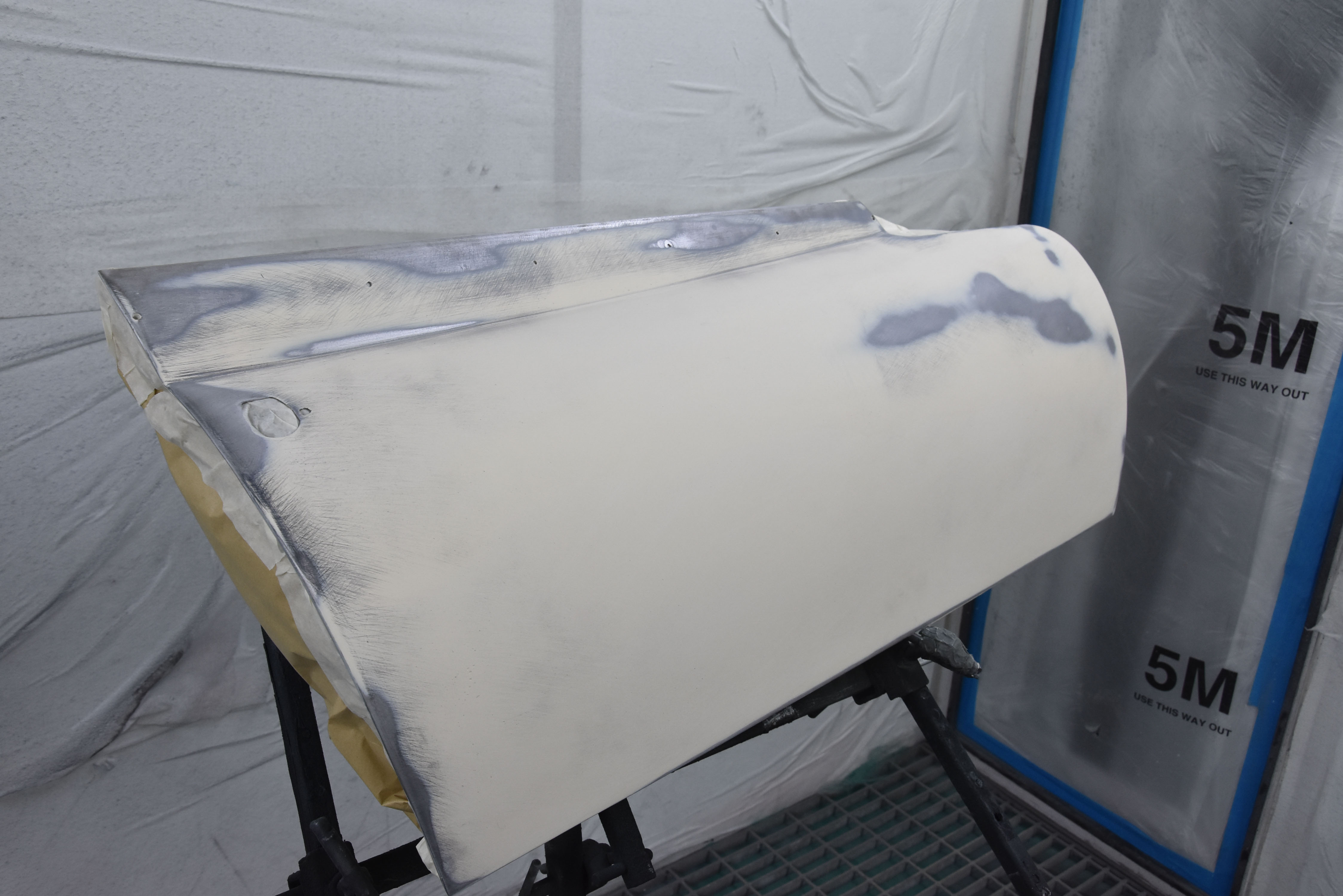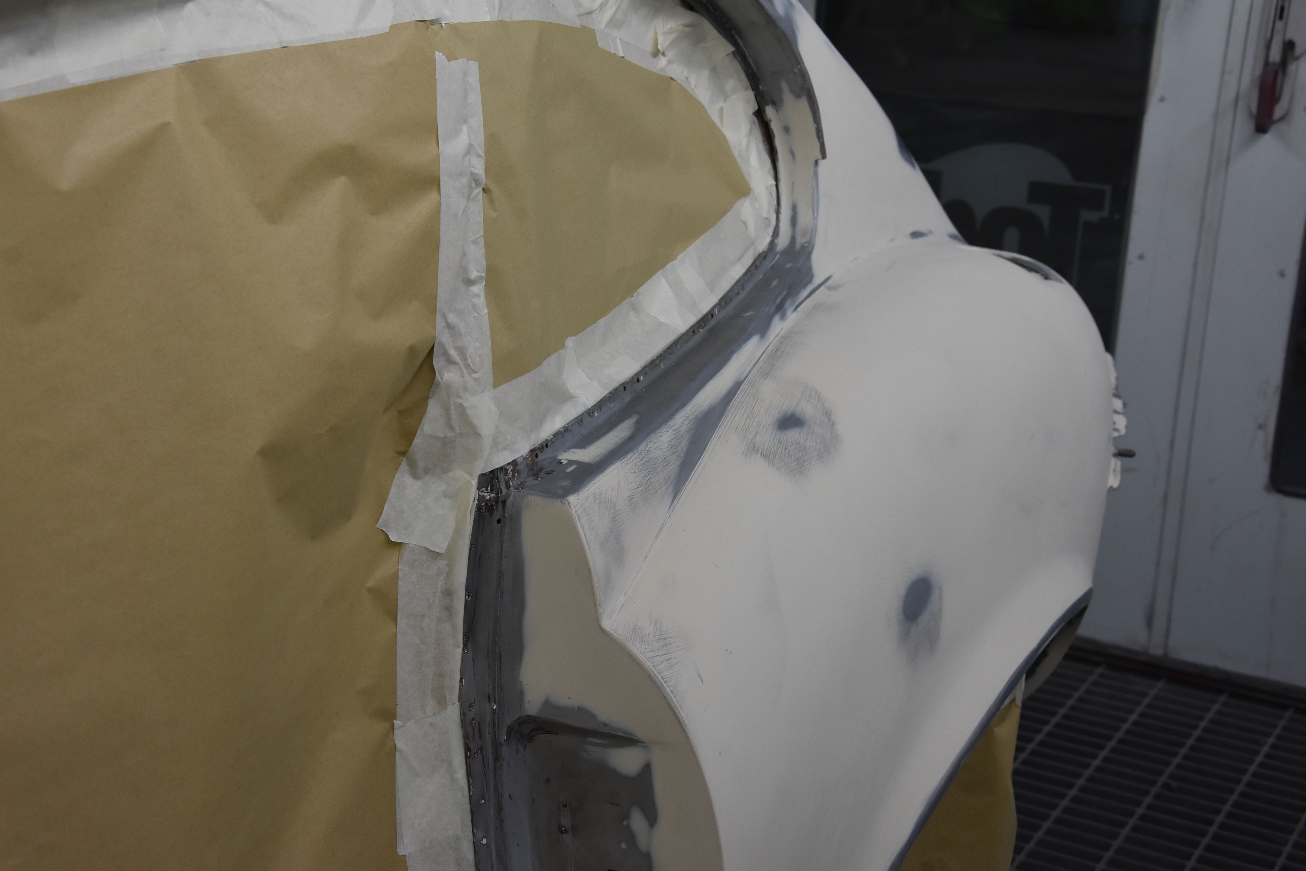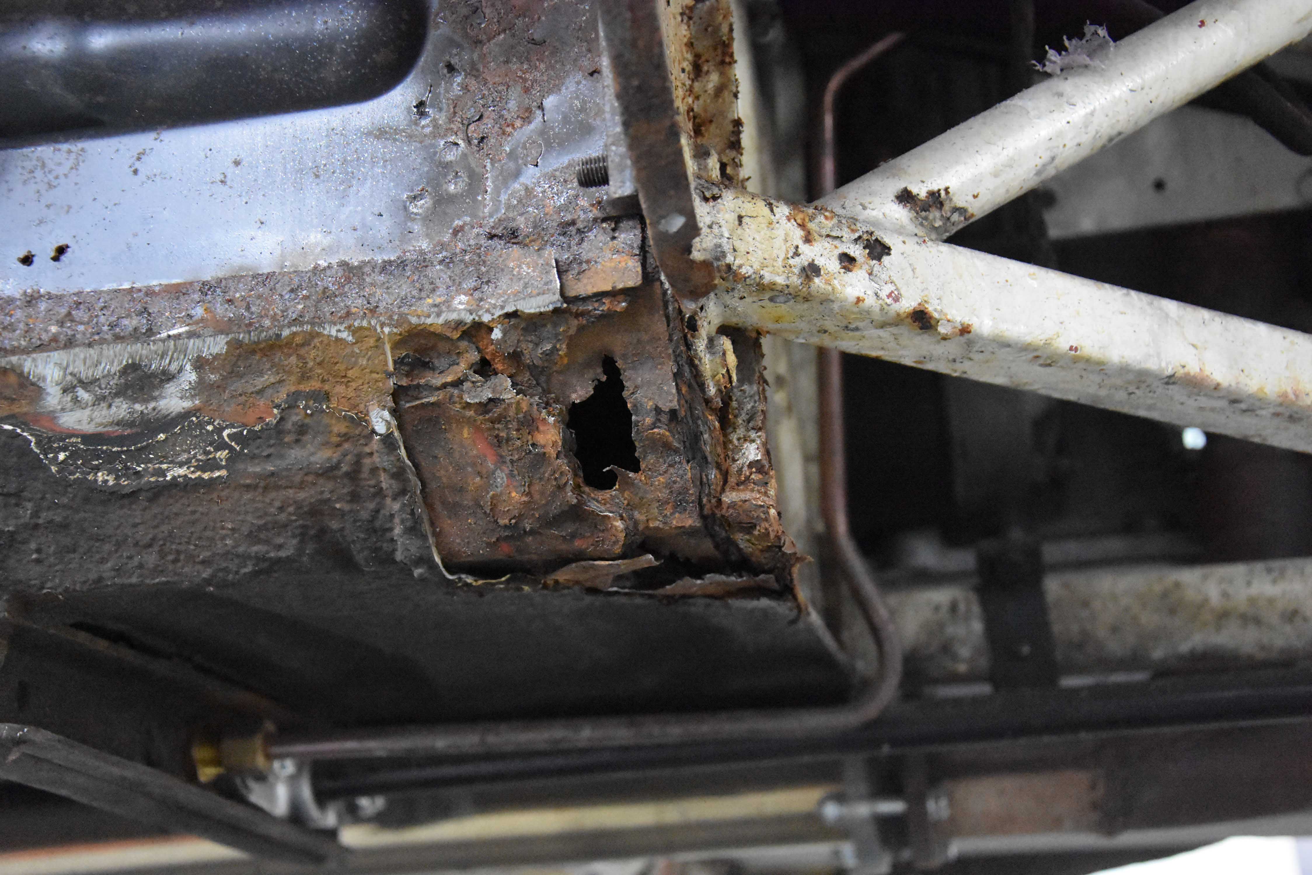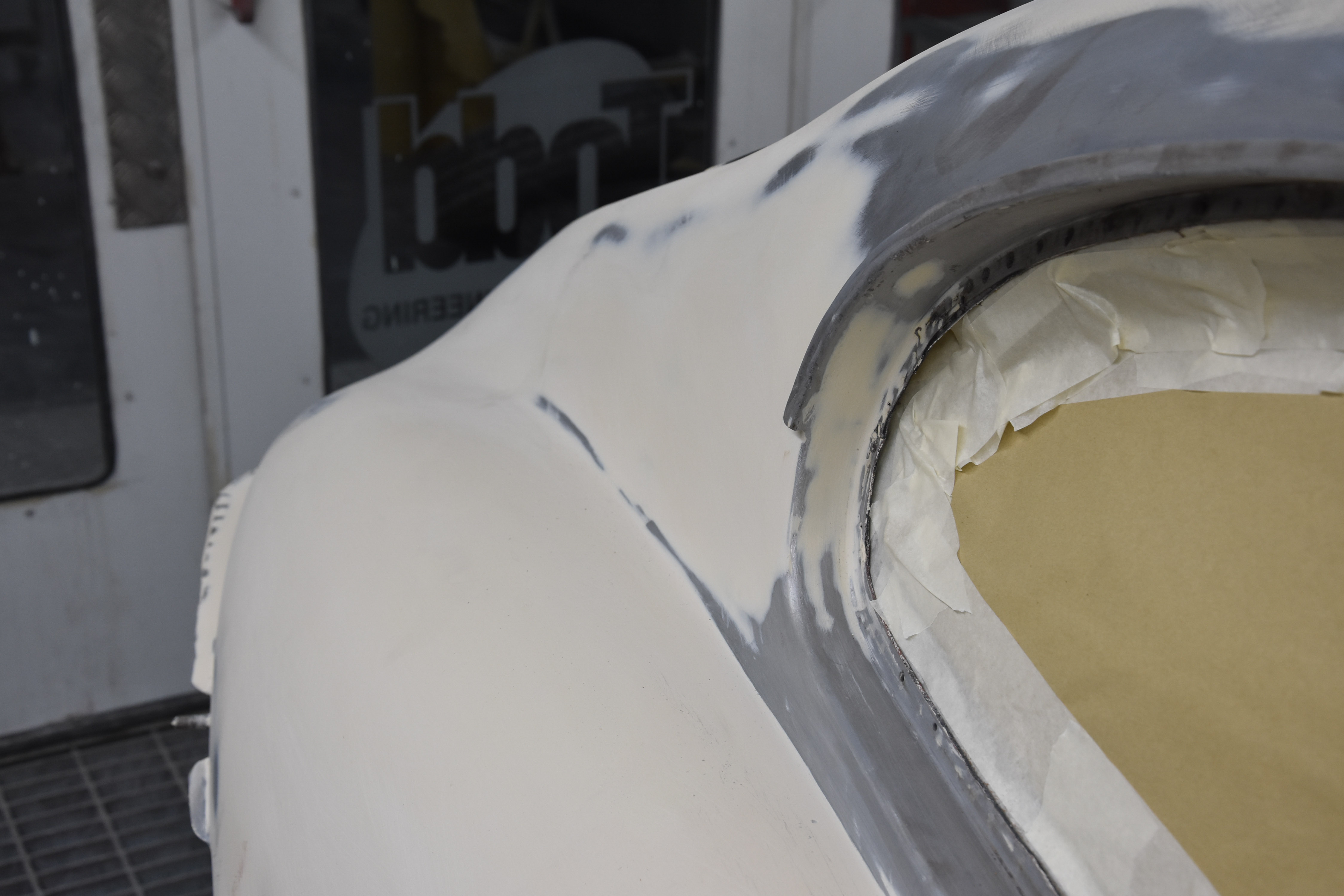 With media blasting not required for this particular project, the Series 3 2+2 headed straight into the Bodyshop after having all necessary interior/exterior components removed, leaving a running shell. The team began the lengthy process of removing the existing Old English White and other underlining material from the shell, finally exposing the metalwork.