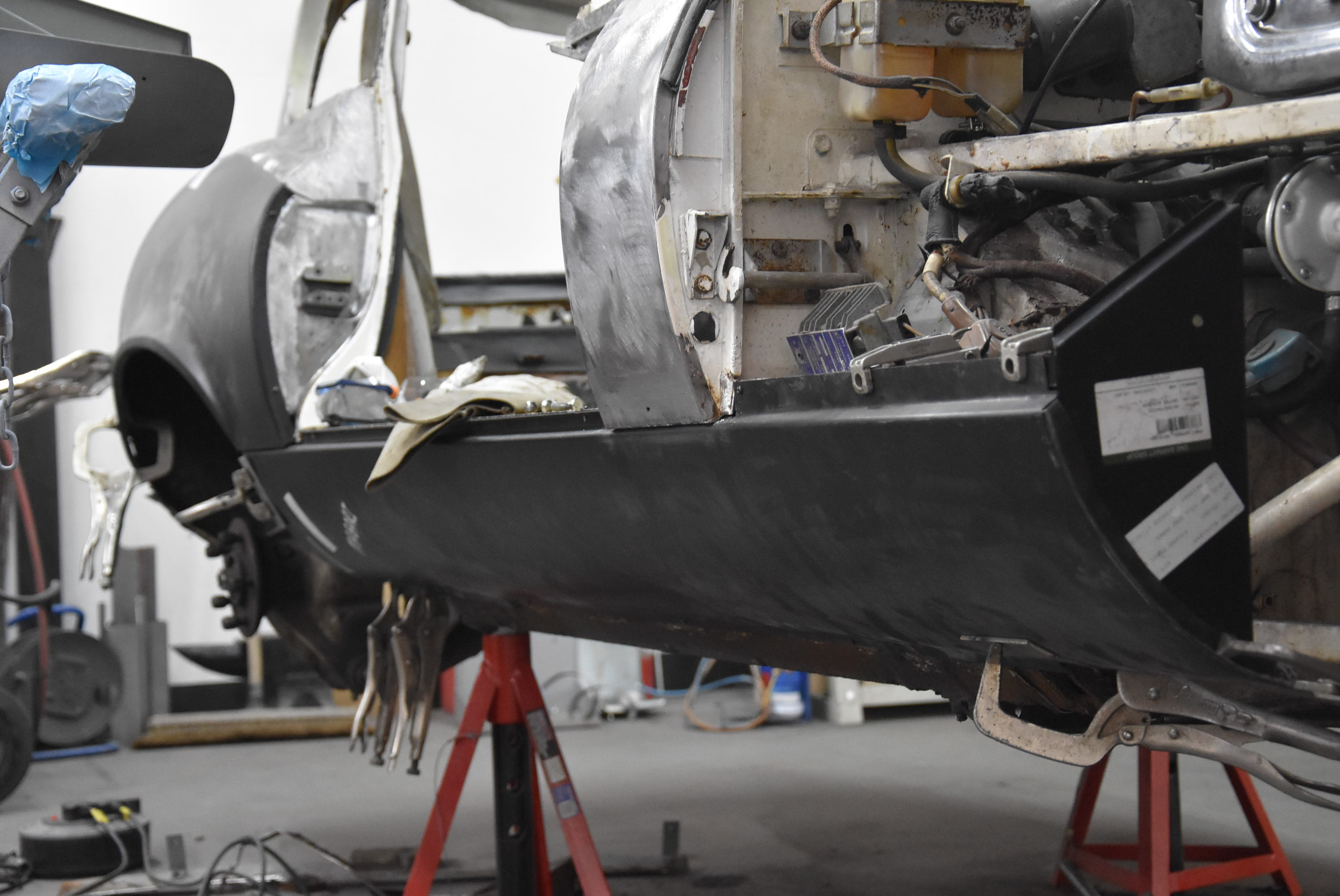 Since the example arrived at the workshop under its own steam, unlike most of the pusher restoration examples passing through the doors, this Series 3 offered reassurance of a solid base to establish the project from. Following a closer inspection by our experienced bodywork technicians, this assumption was reinforced, therefore the decision was made to simply exterior strip the example back to bare metal.