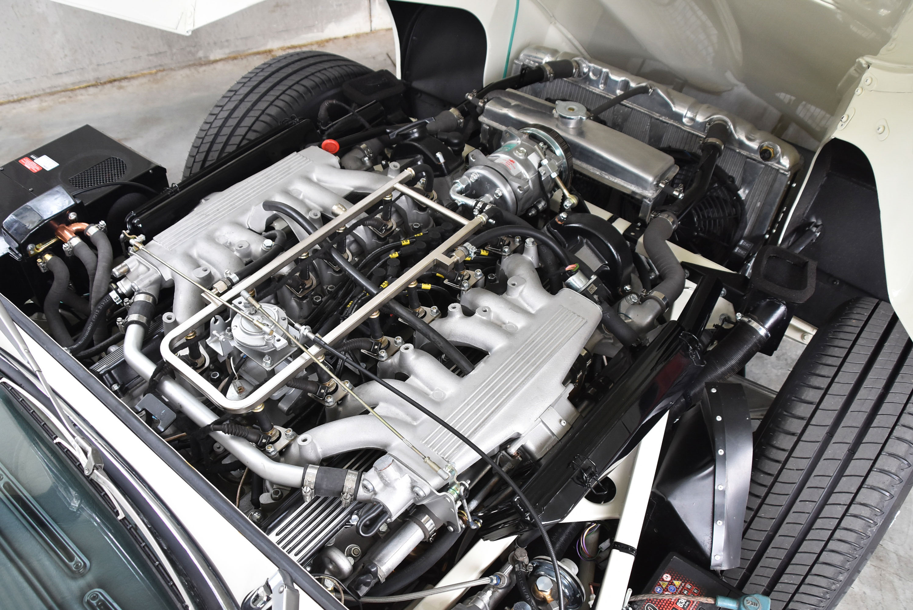 Finally resembling the Jaguar E-type shape, boasting a better than factory-fresh finish, the shell is given to the workshop team to begin its full rebuild process. It's at this time the client is given the opportunity to complete their restoration to their exact specification, making important decisions with regards to the drivetrain, cooling, suspension, braking and much more. Guiding the client on a specification that best meets their driving and use requirements, the build spec is decided. The following upgrades were to be fitted to gift this Series 3 V12 with performance and reliability: