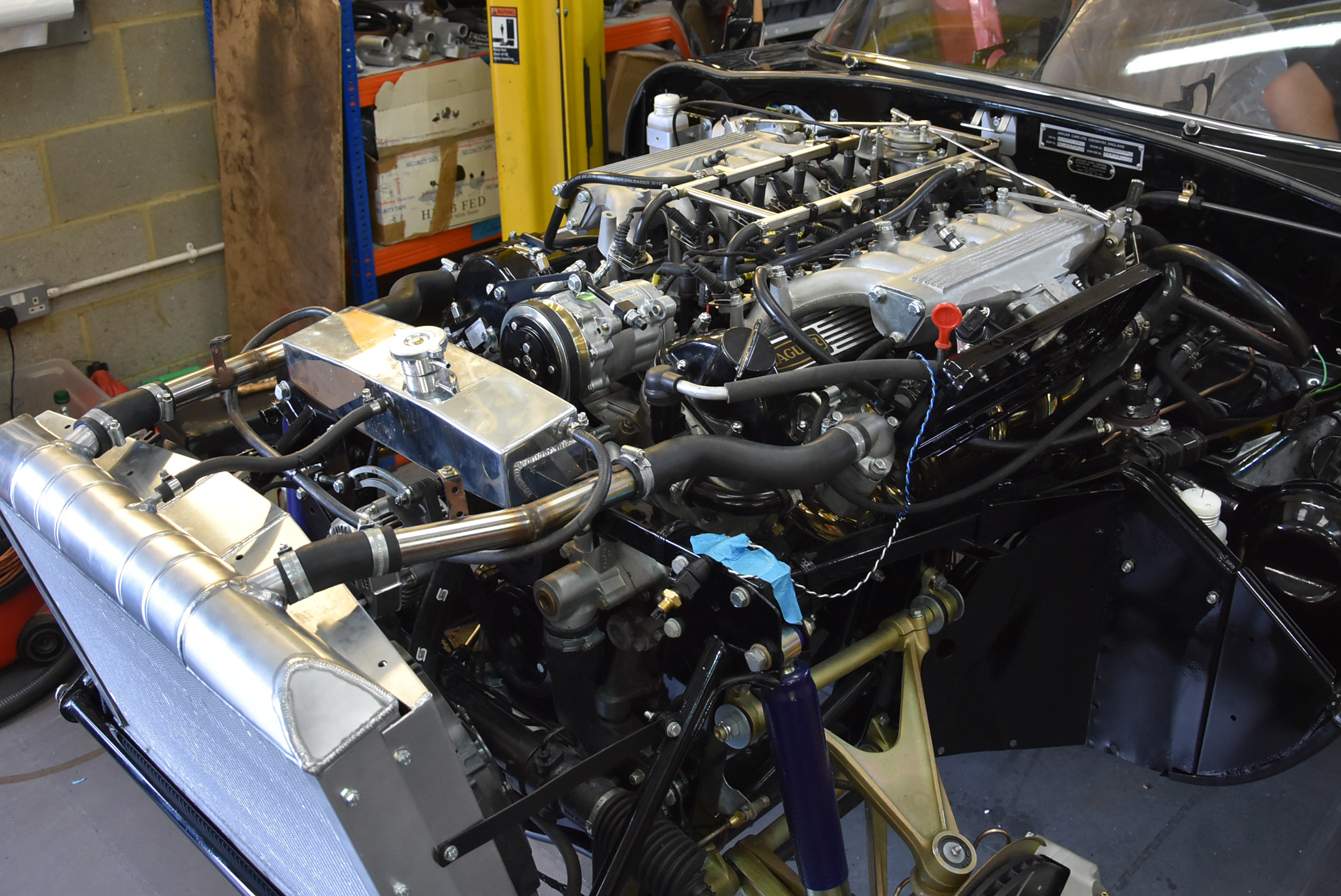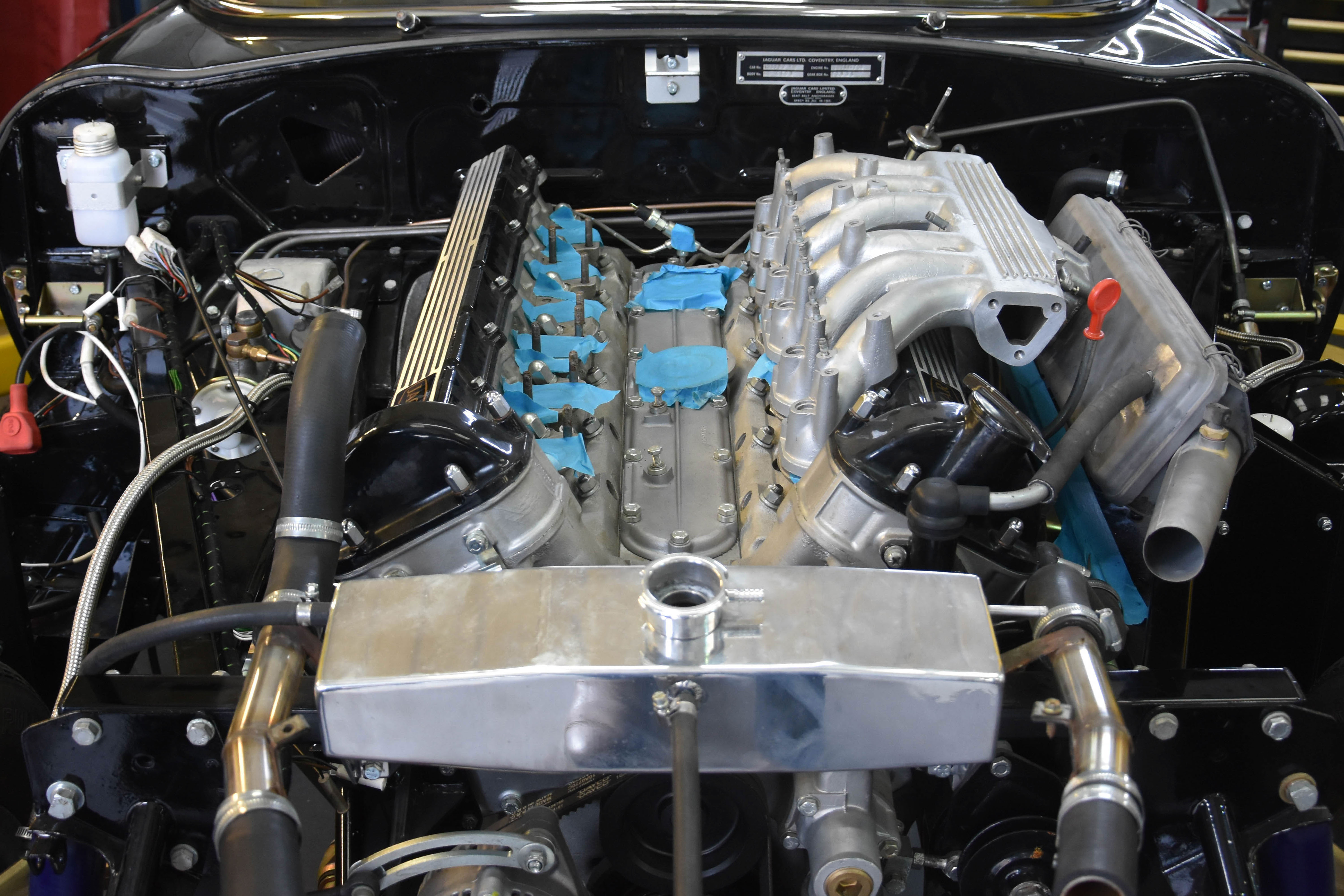 Establishing the roadsters position the team make a start, first addressing the E-type brakes. To increase performance and reliability for more every day use the E-type is fitted with E-Type UK bespoke designed 4 piston aluminium callipers, green stuff brake pads and vented discs. The rear is given the same treatment introducing fully adjustable shock absorbers to match the front suspension. With the braking and suspension addressed allowing the driver to undertake controlled city driving as well as high-speed motorways, the team turn their attention to the V12's power and running.
