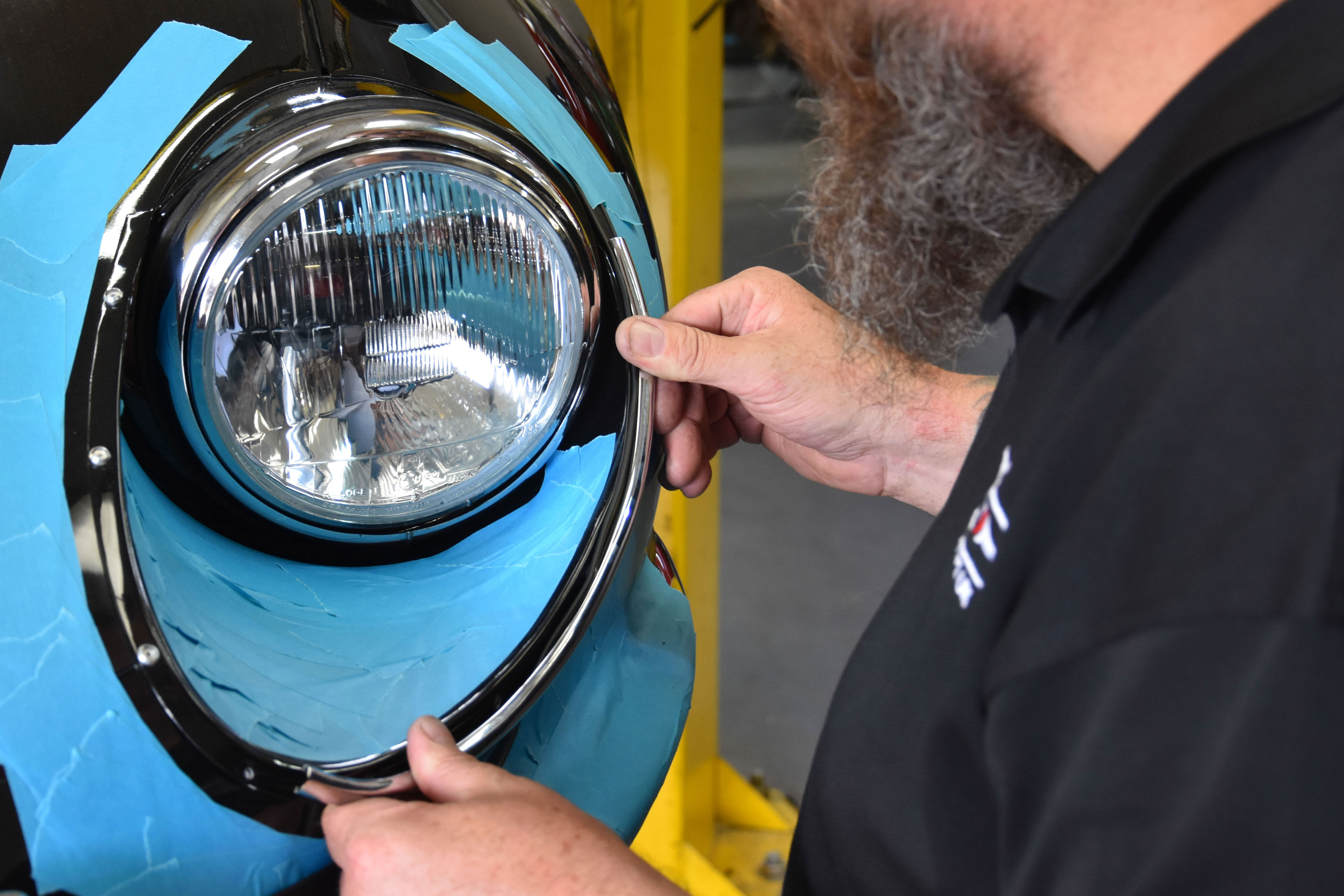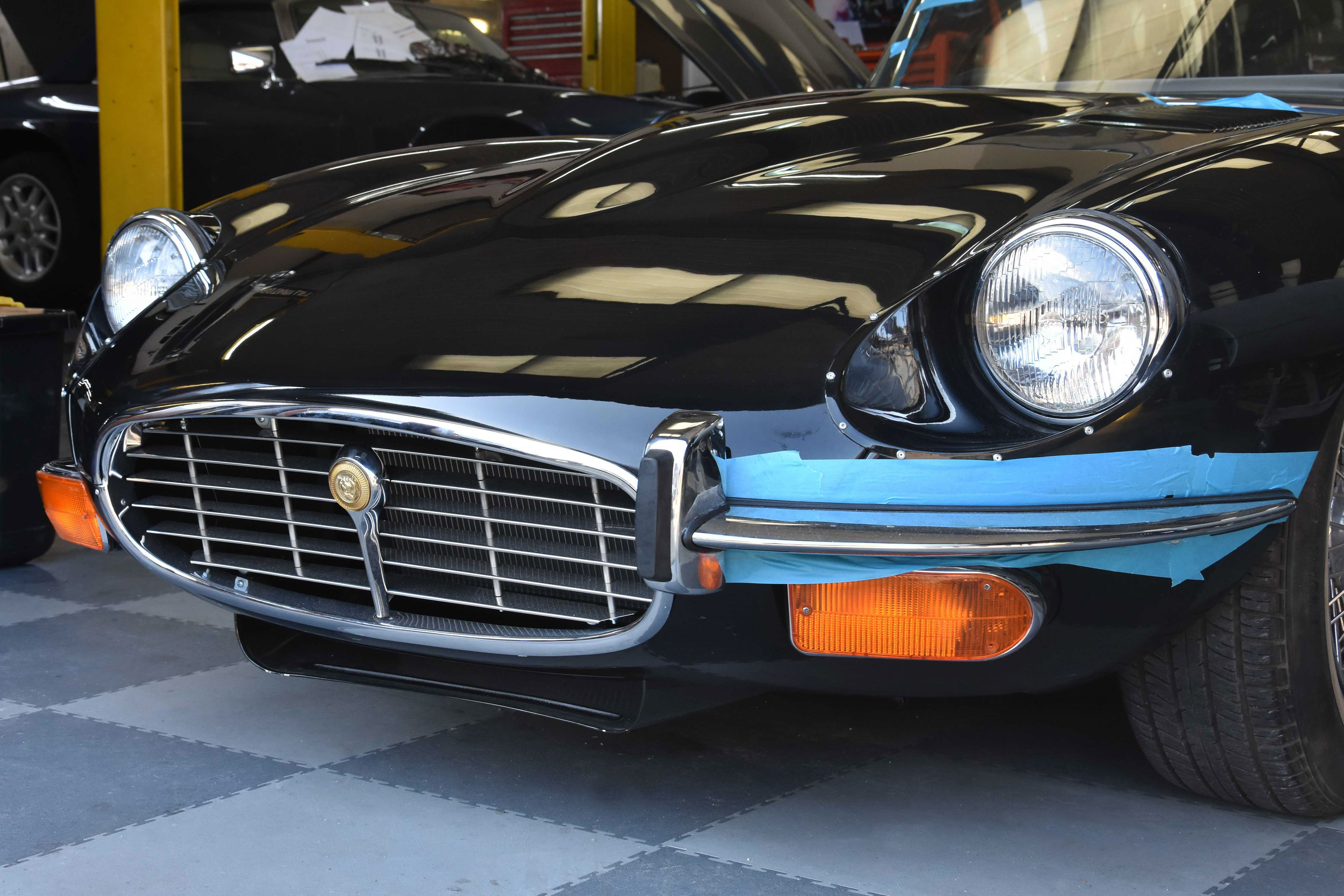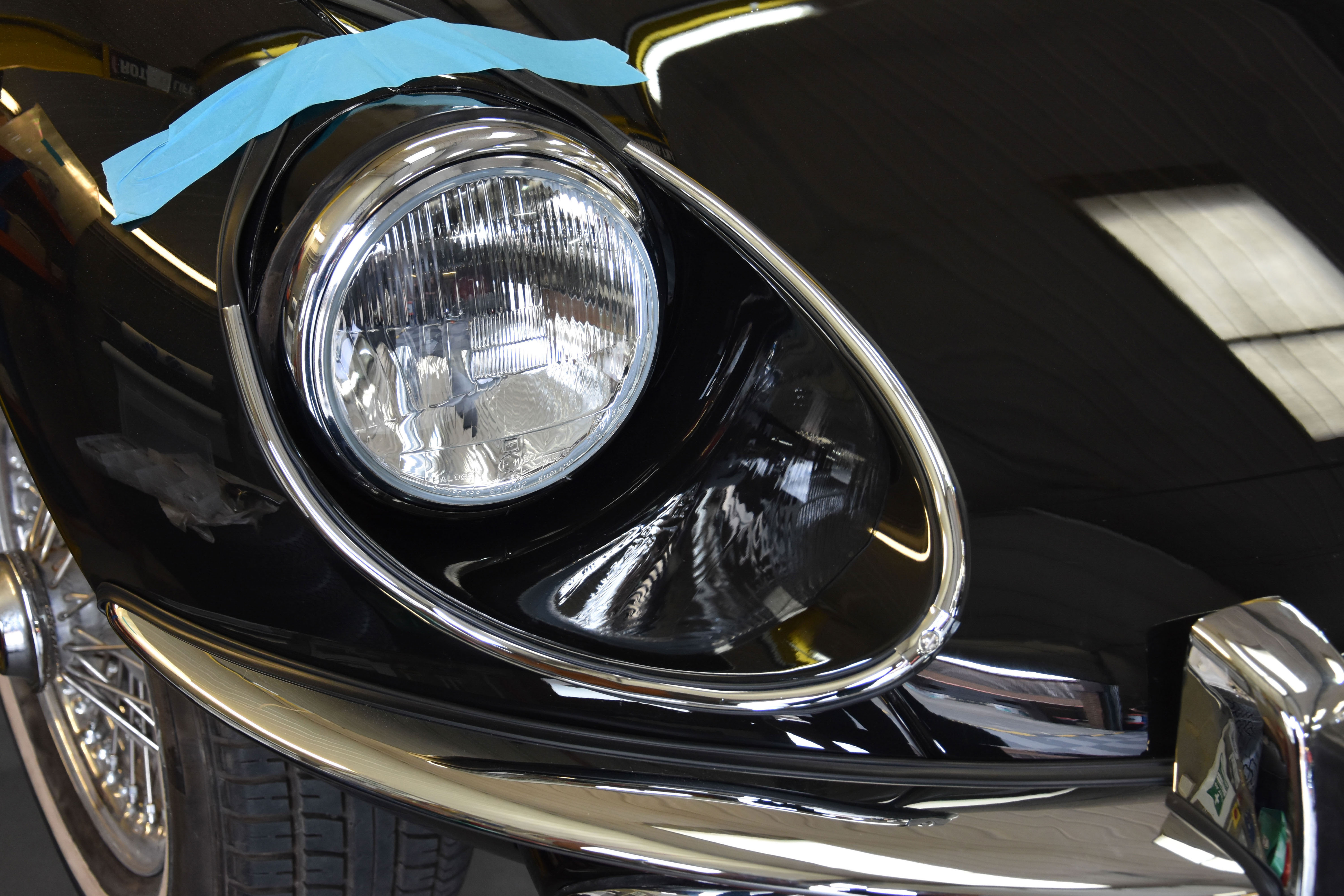Now entering its final stages, the Jaguar E-type is fitted with all new chromes and exterior brightwork, including headlight surrounds, grill and overriders. To give the E-type that final subtle modern touch, the roadster was fitted with a LED headlight conversion, offering the driver reassurance of clear and safe night time driving.