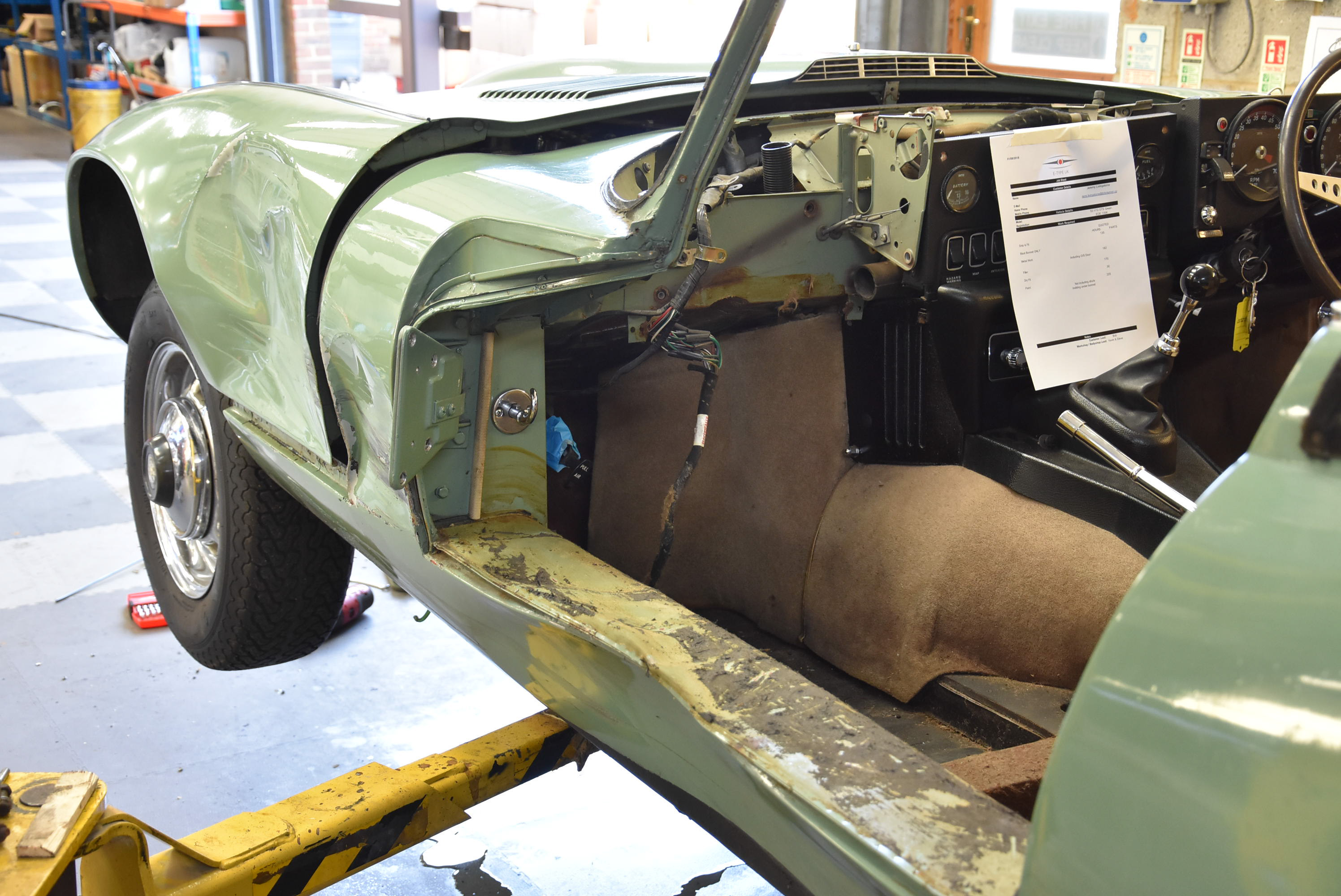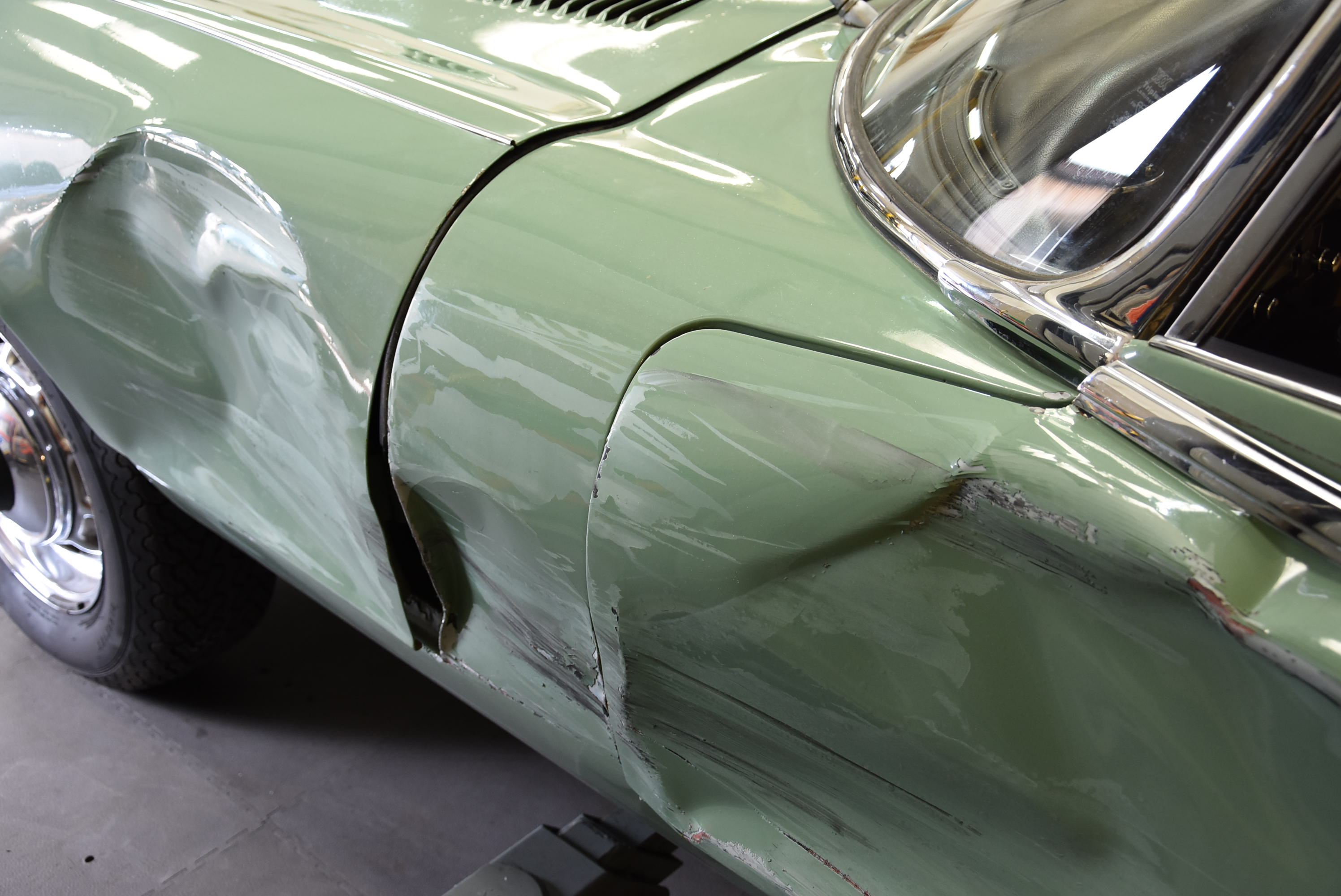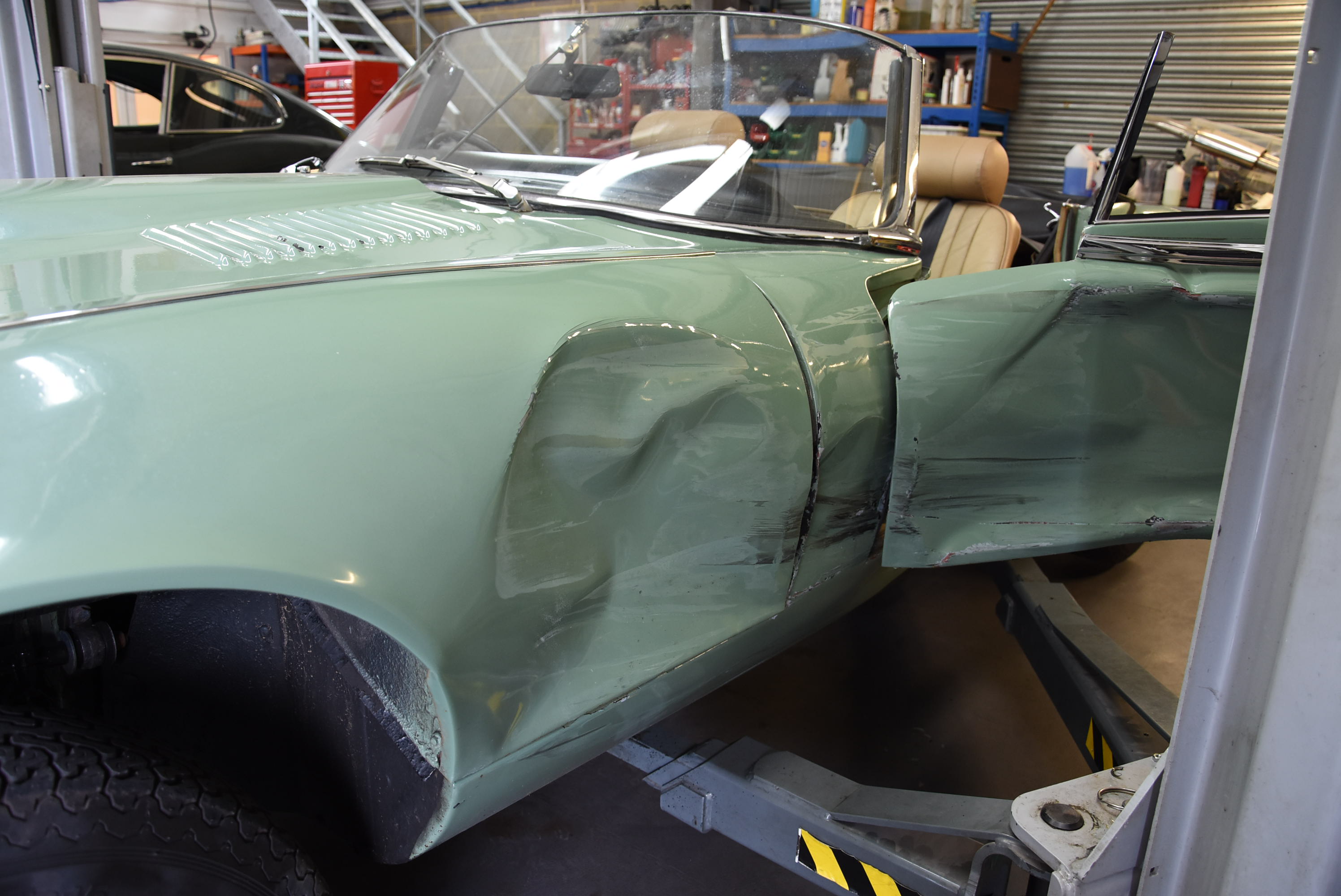 Once the Series 3 arrived at E-Type UK our restoration technicians ran a full inspection to assess the damage of the incident. Much to the owners delight the inspection highlighted that the damage was mostly superficial, and the E-Type’s chassis remained intact.