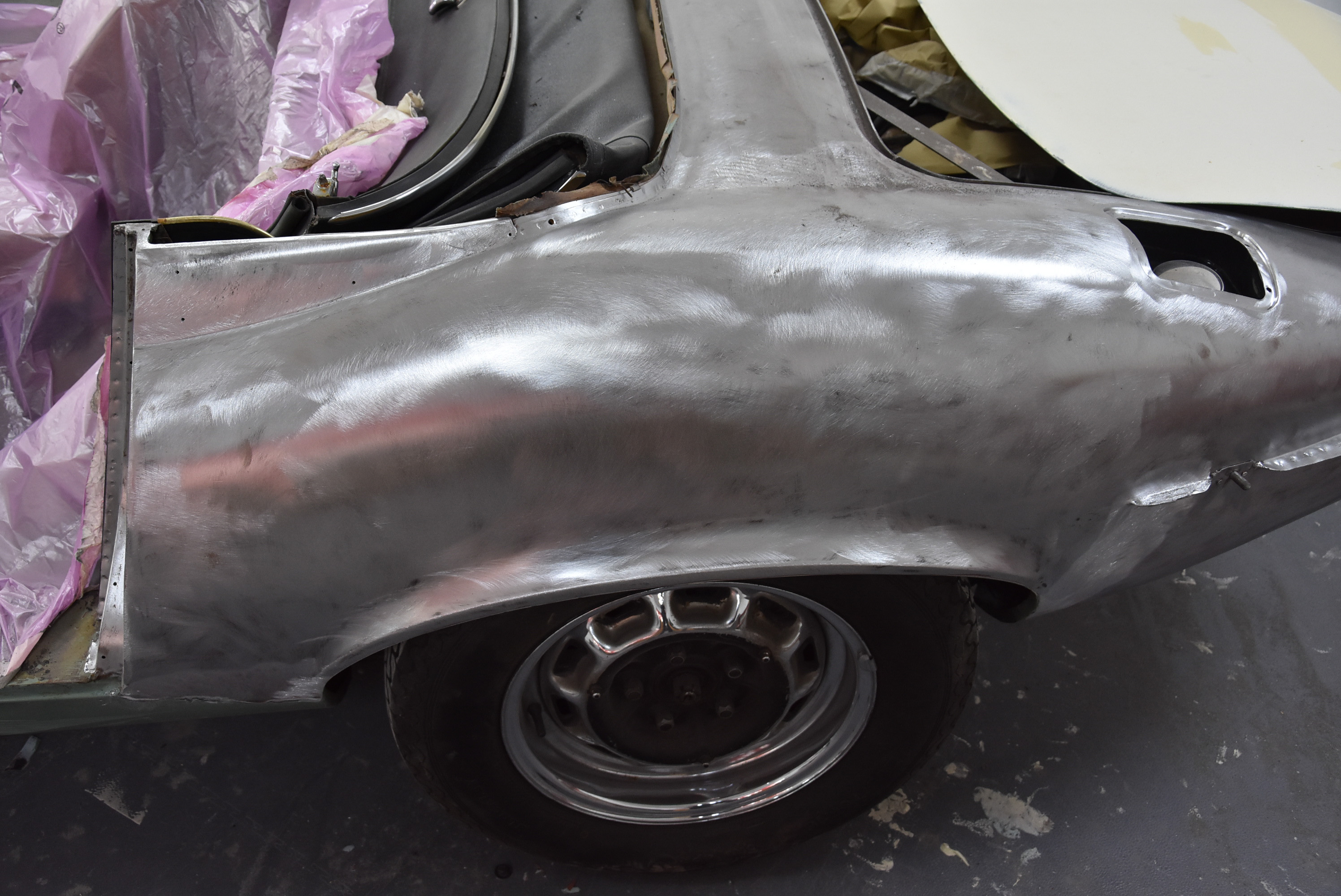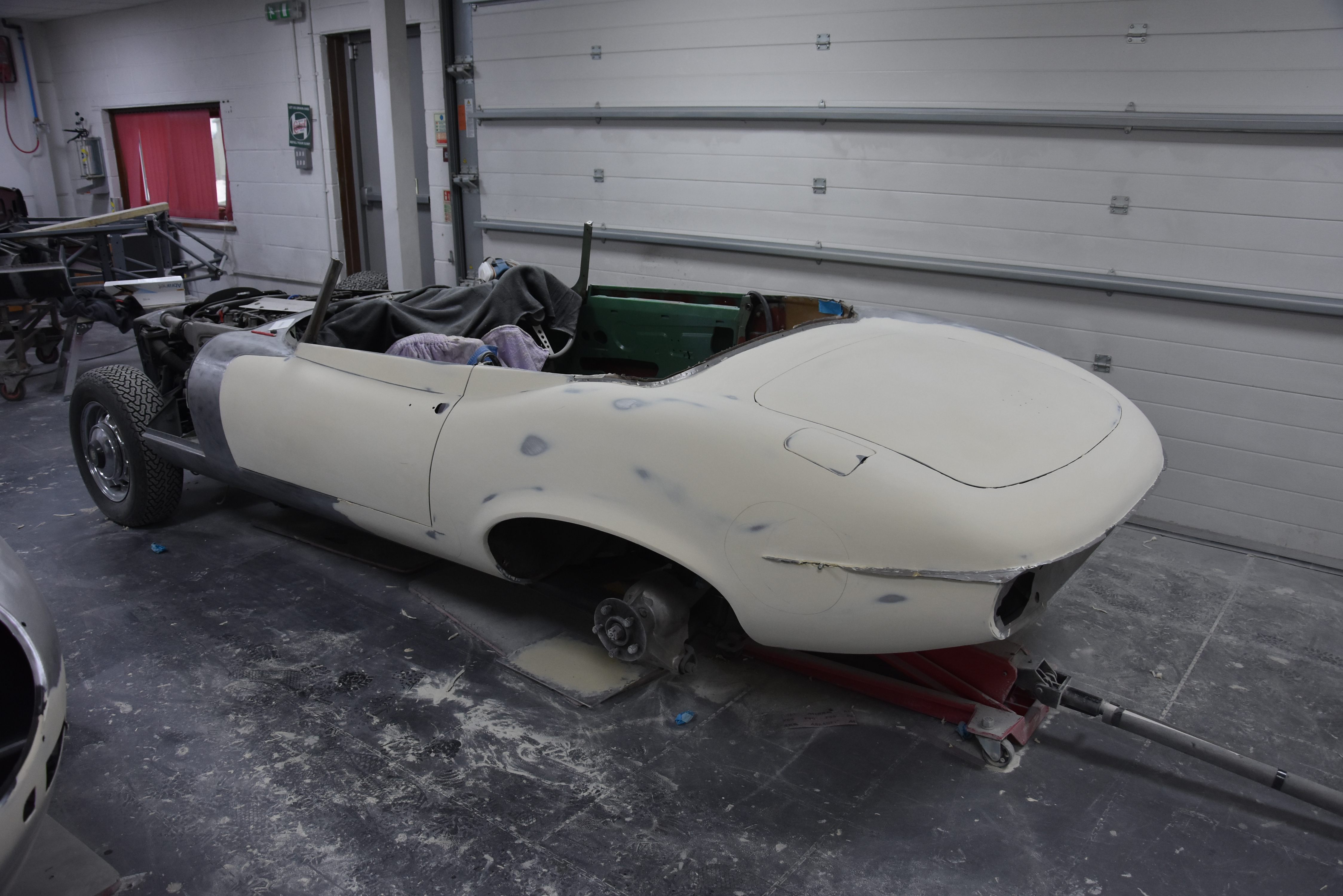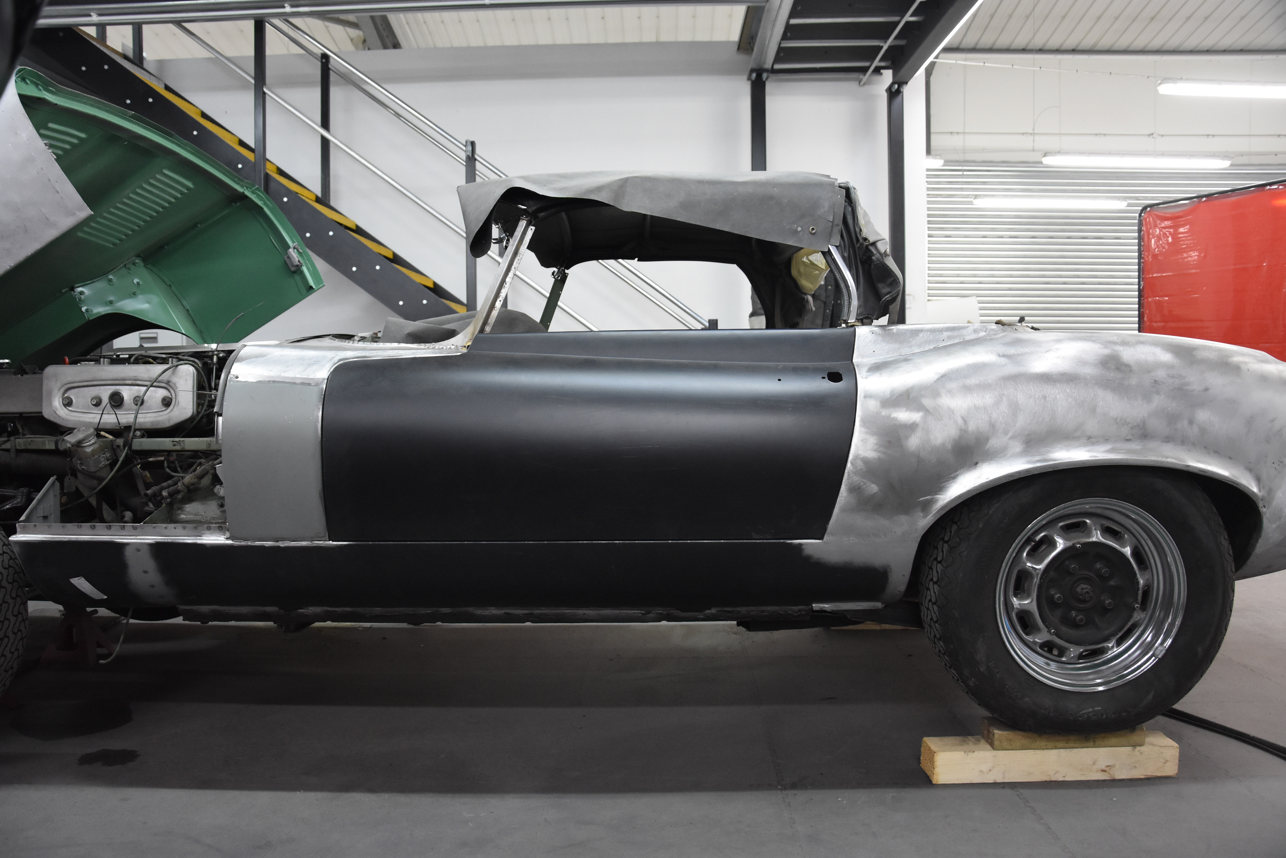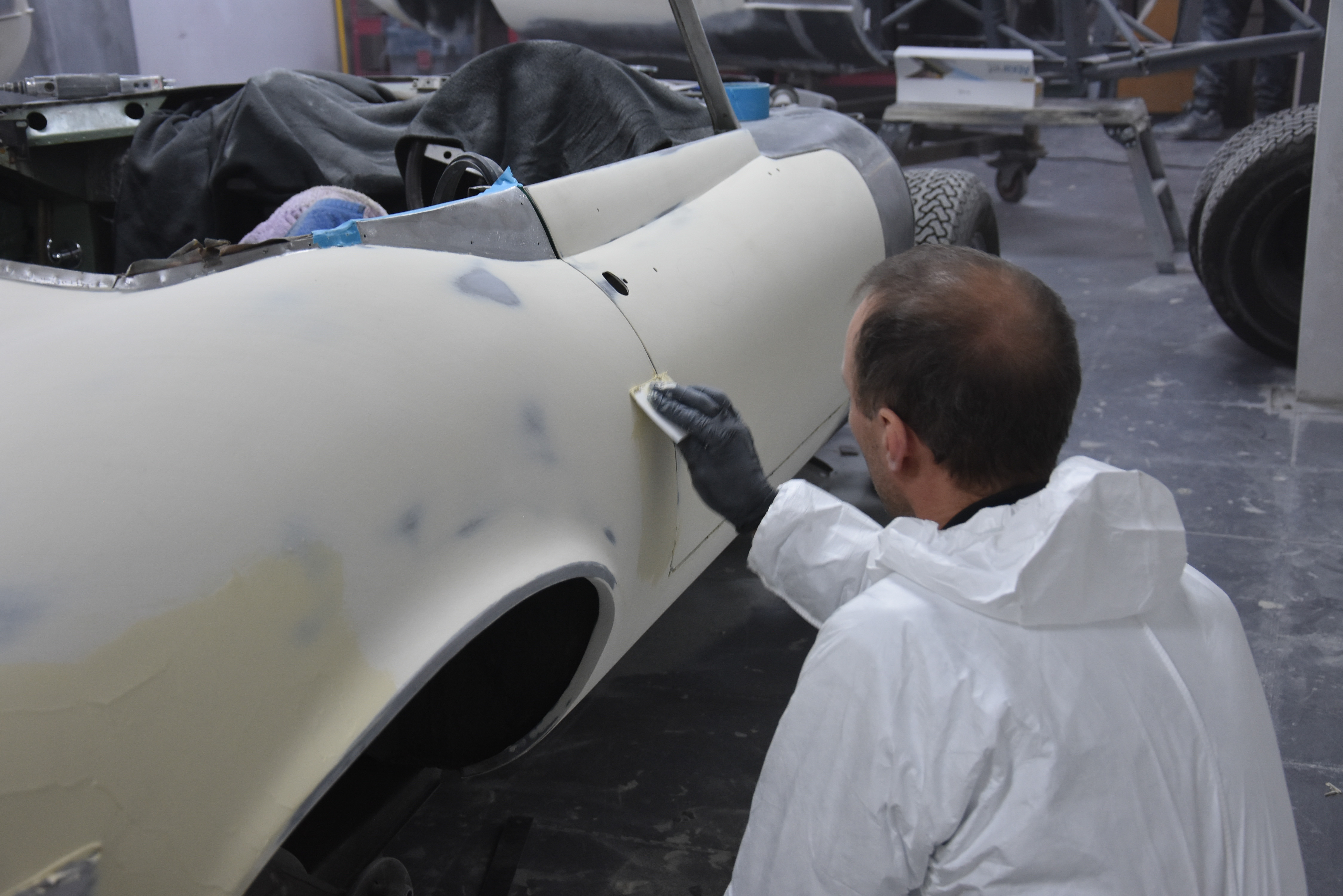 After first launching in 1961, the E-Type became established as an icon of the motoring world. 10 years later after the Series 1 captivated the world, the industry was treated to the Jaguar's answer to the huge demand from the US market, the Series 3. With its 5.3L V12 and new longer wheelbase offering more room in every direction, the S3 was identifiable via a large cross-slatted grille, flared wheel arches and overall noticeably curvy body line from its older siblings. When restoring any E-Type model the filler process is a hugely important stage, as at this time the car is given its iconic lines and perfect panel gaps.