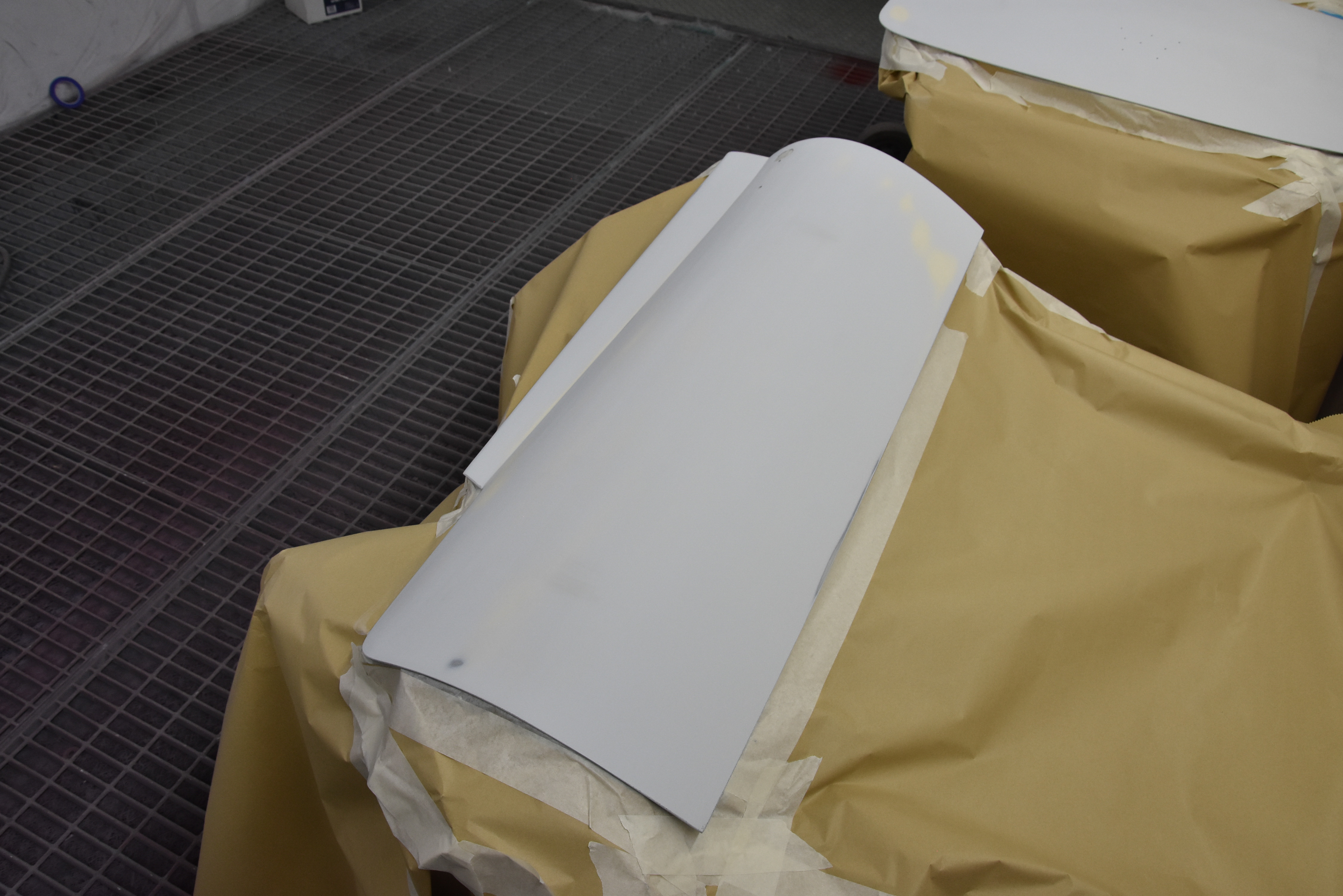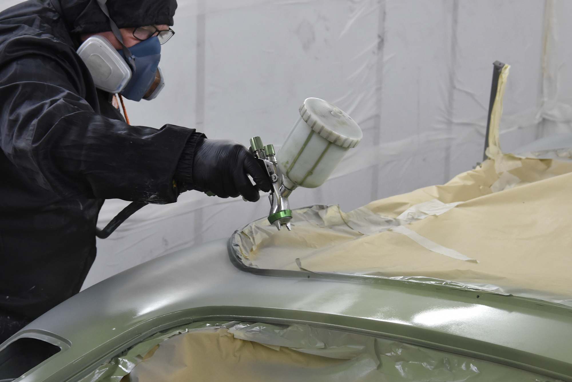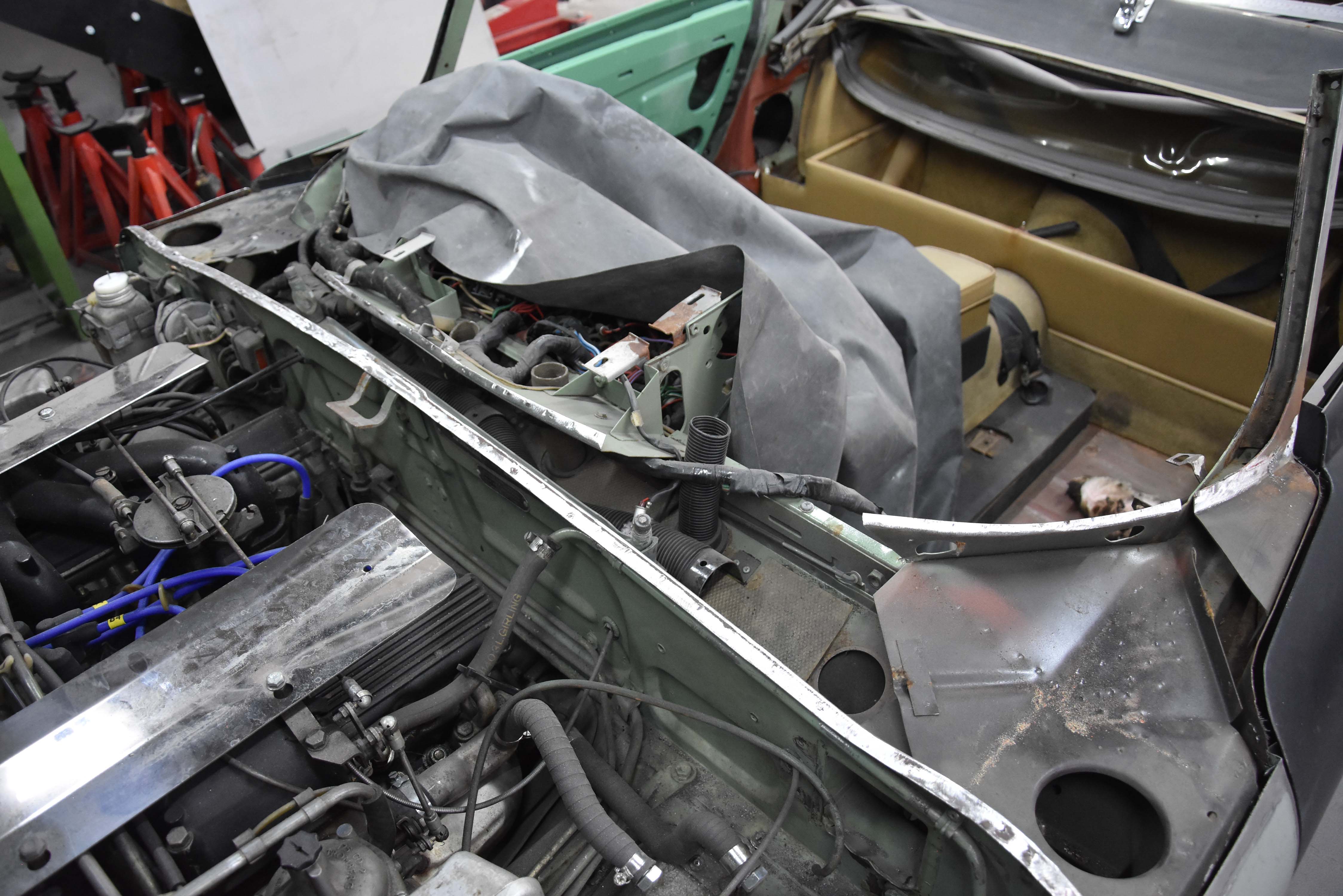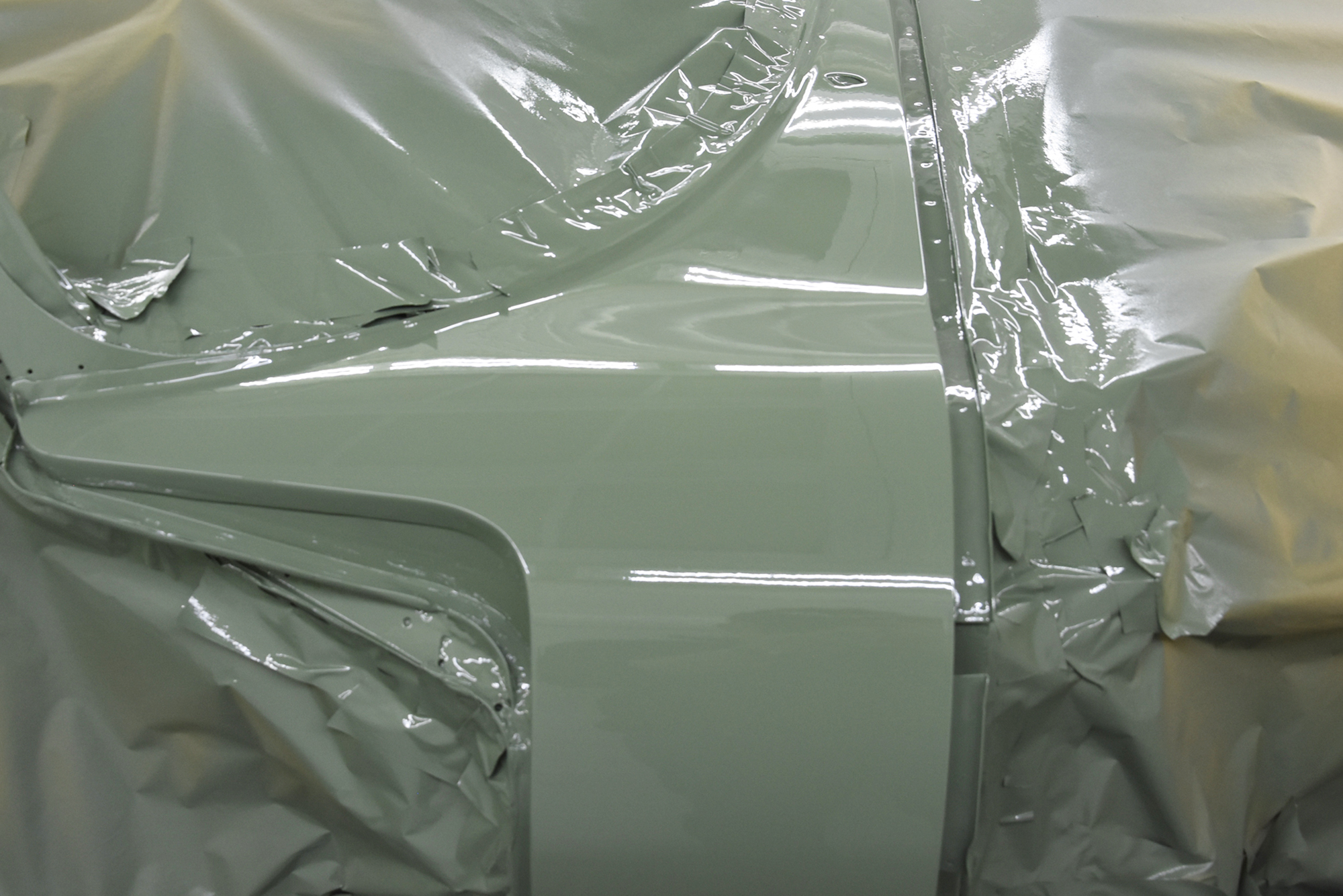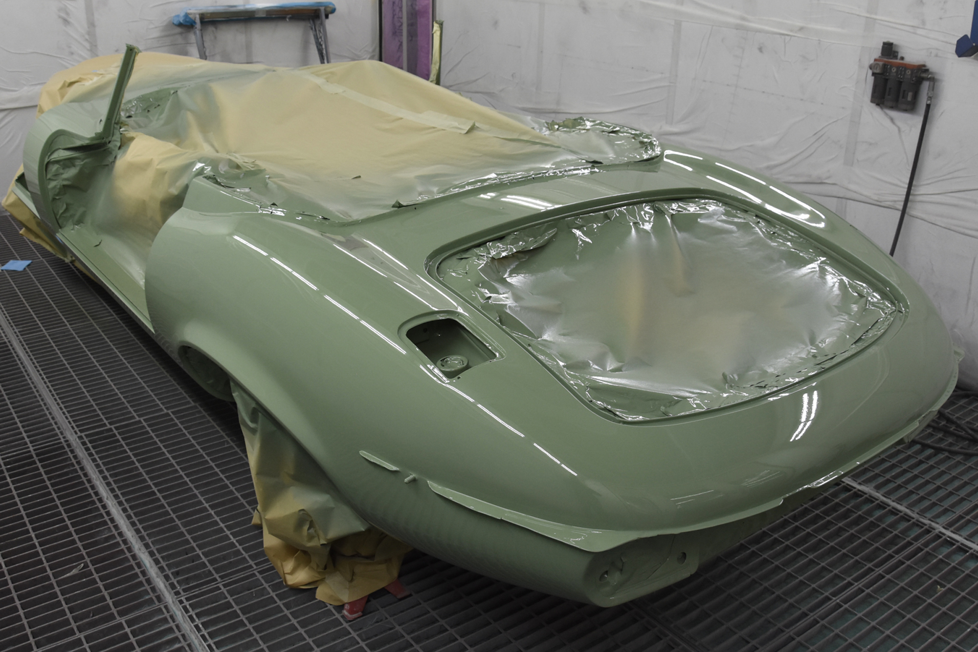 Now nearing the end of its primer process the team prepares to spray the car to its factory finish, Willow Green. Once sprayed the Series 3 will be treated to a full interior retrim.