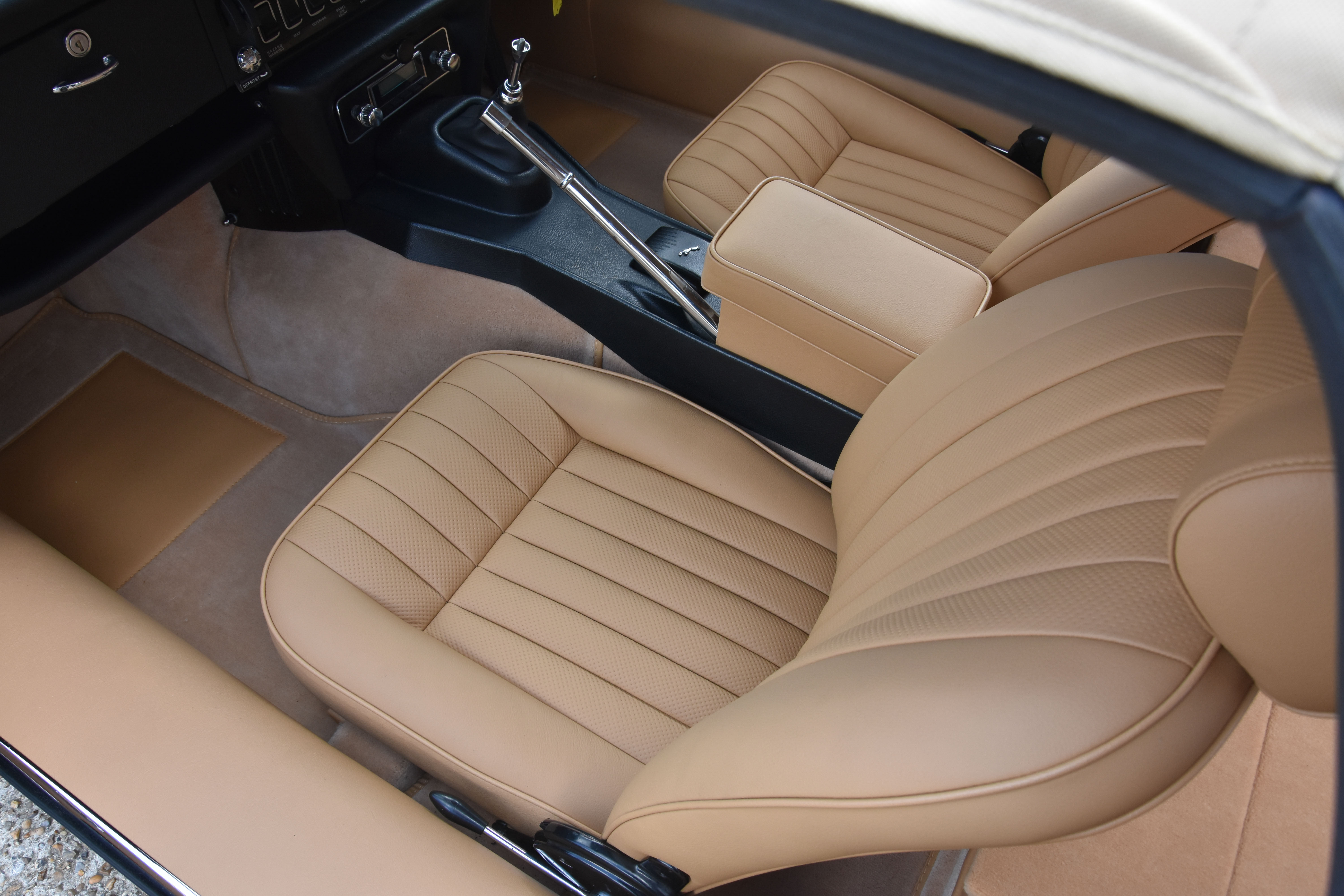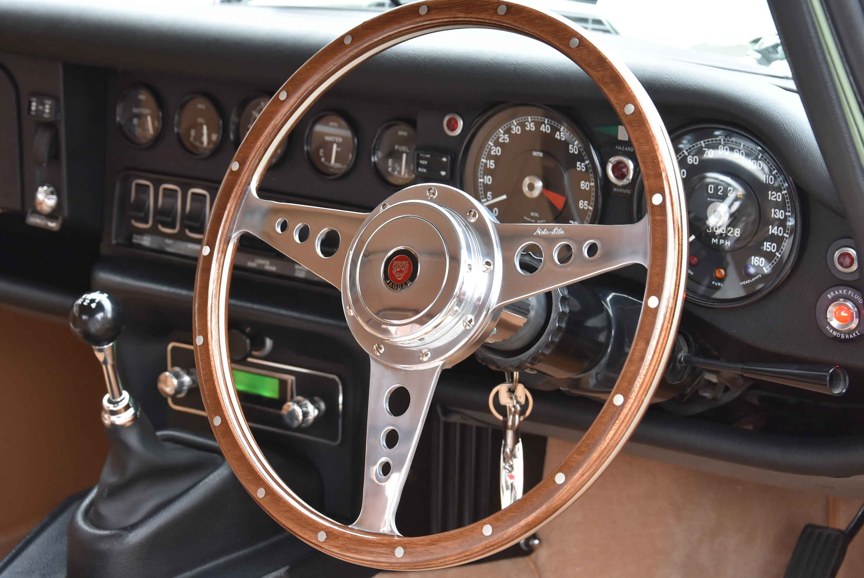 With final touches made such as fitting the re-chromed exterior brightwork, the car now boasts a beautiful classic finish making this Series 3 roadster a highly desirable machine, finished with period style number plates, side mirrors and factory standard steel wheels. During its time with us, the client decided to take the opportunity to add minor upgrades to improve the driving experience, such as fitting a stainless steel sports exhaust to enhance the V12's roaring soundtrack and a 14" Motor-Lita wooden steering wheel for a sporty feel and look.