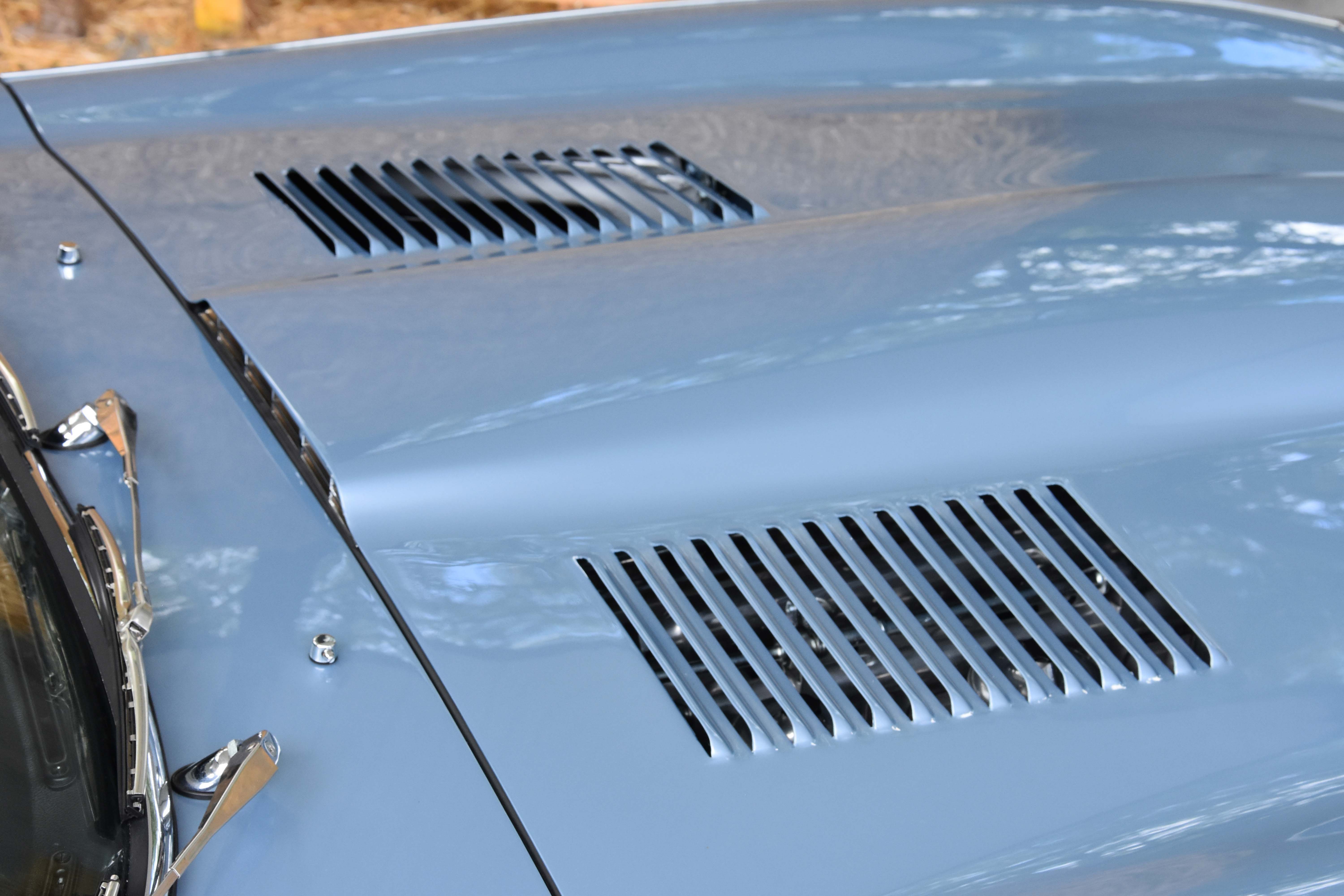 Making a mark on this E-type, the client has also commissioned a number of personal touches one of which includes a nod to the limited number produced ‘lightweight’ E-type. Produced between 1963 and 1964, Jaguar had planned to create 18 of this race-bred E-types, however only 12 were ever produced, being an avid E-type road and track fan the owner of this recently completed Series 1 Jaguar had fitted a Red vinyl bonnet mouth or more commonly called ‘lipstick’.