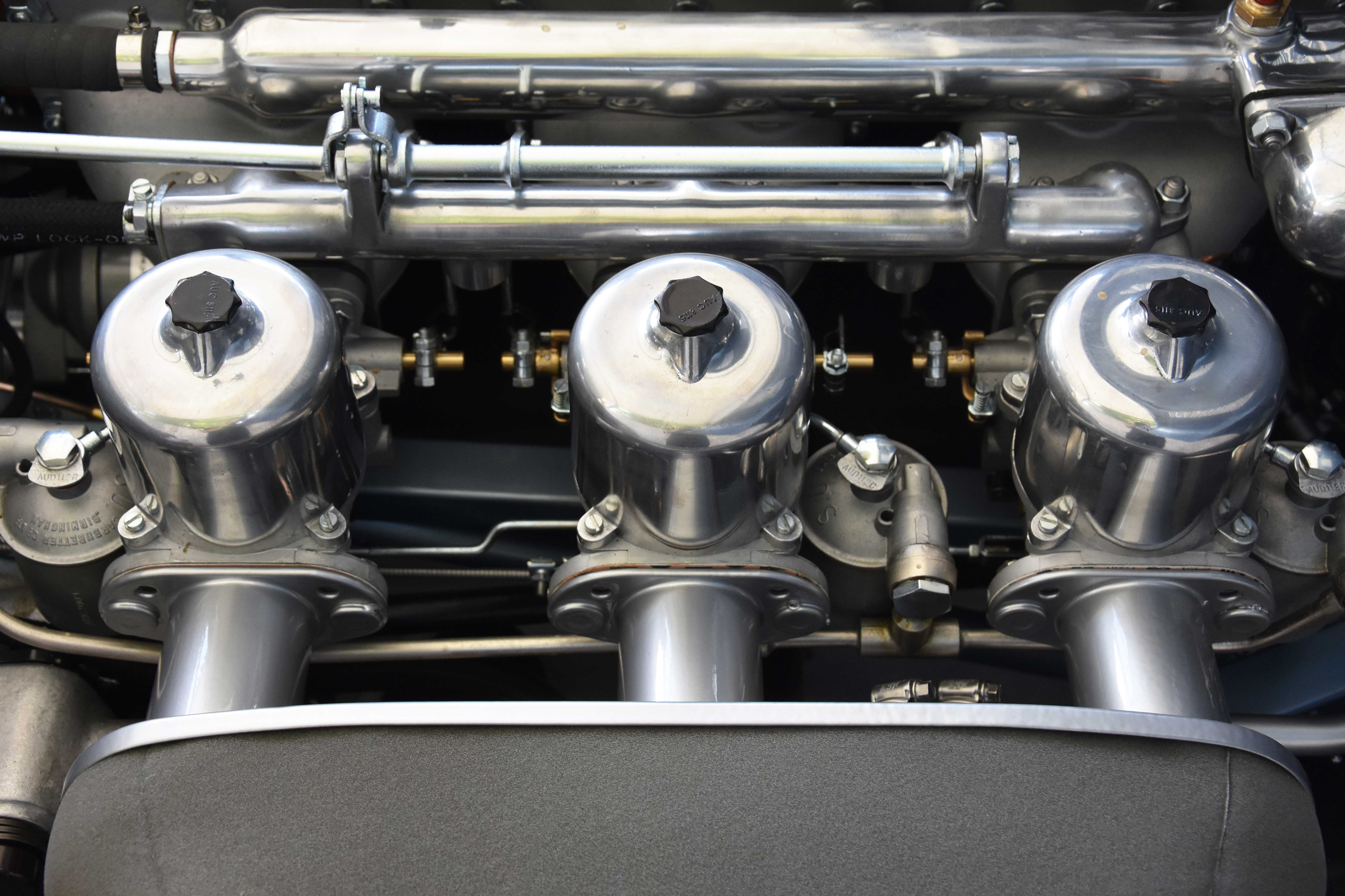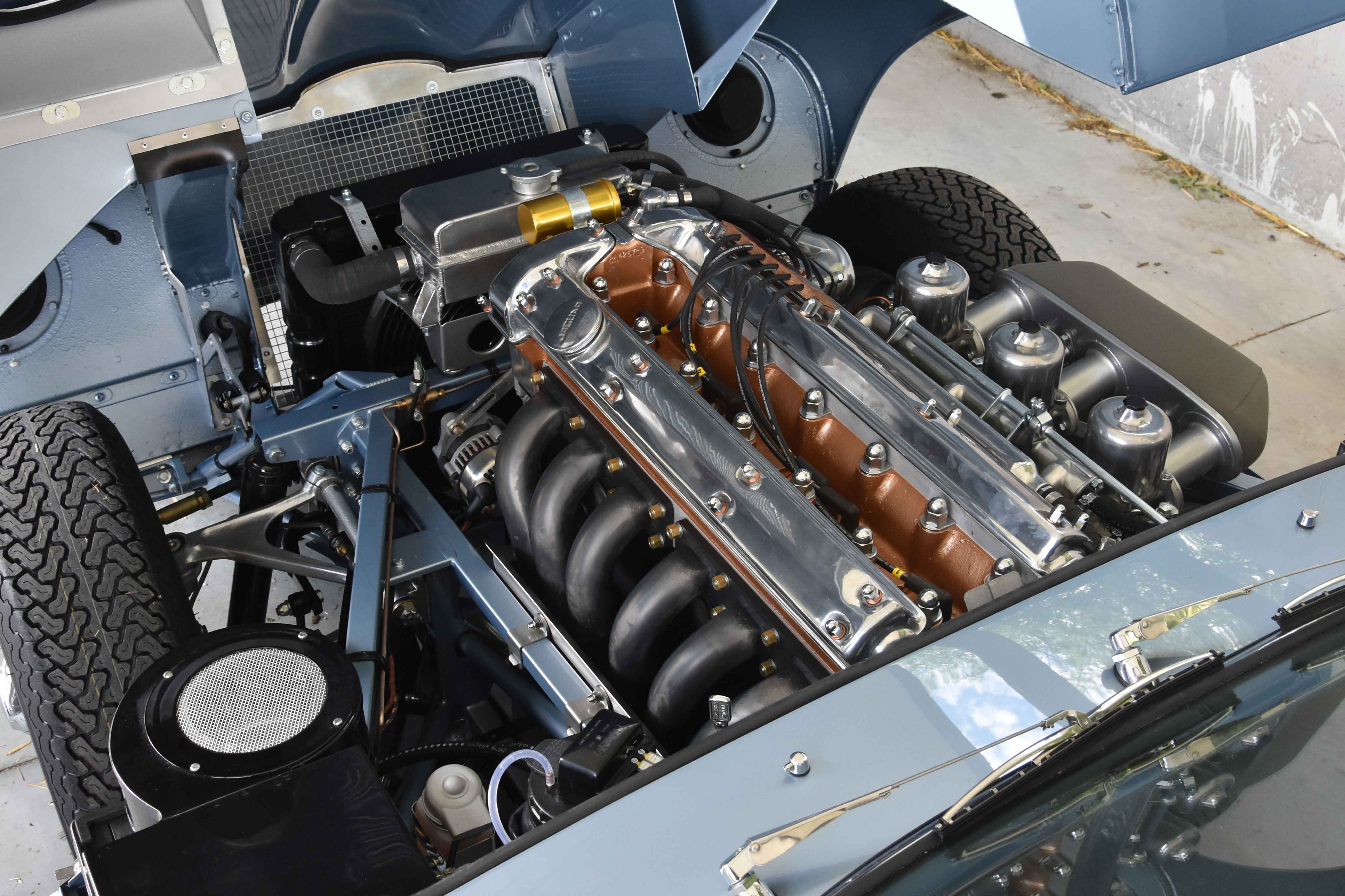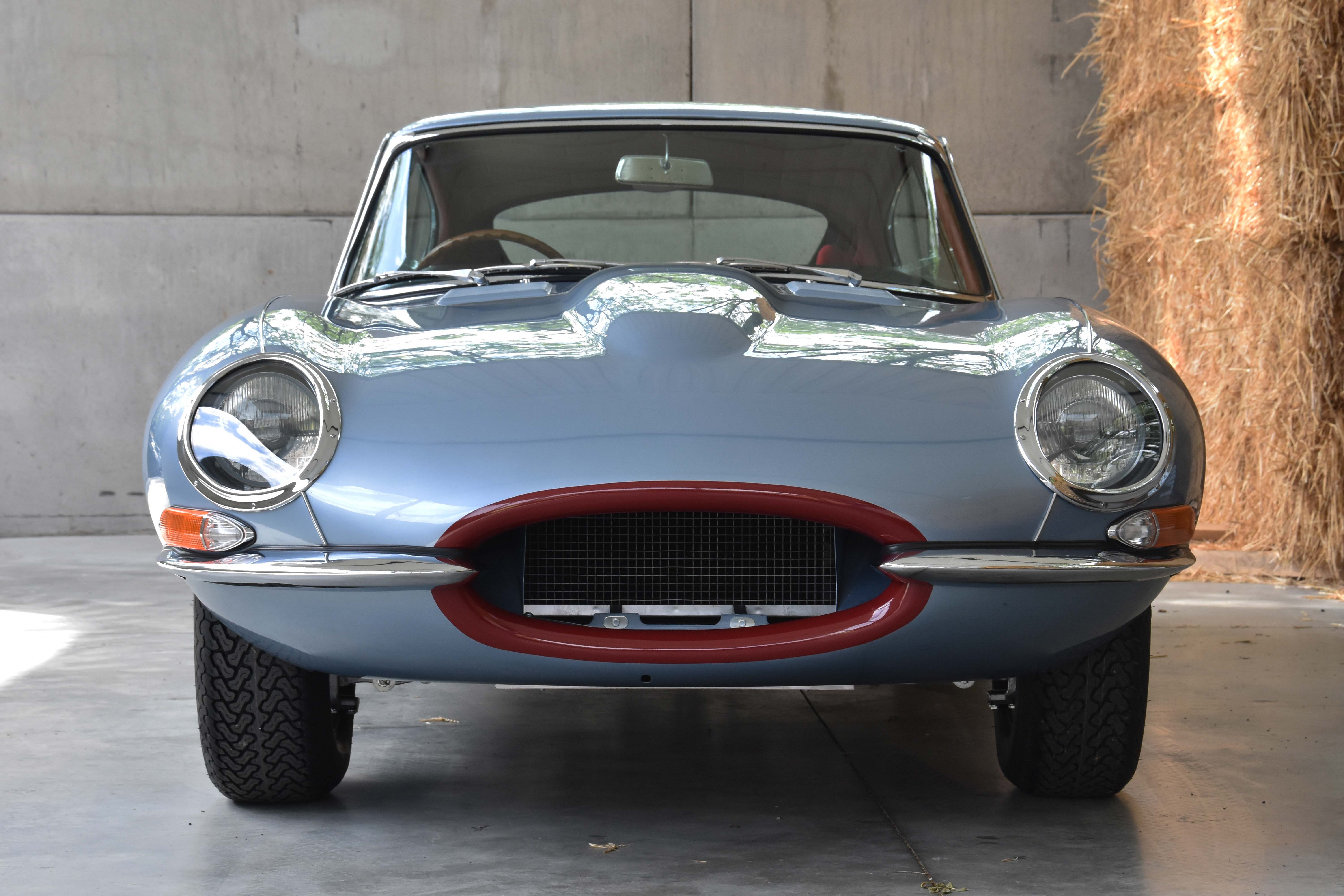 Having been through all our specialist Jaguar E-Type Restoration Services; metalwork, filler, paint, rebuild/upgrade and trim, this 1964 example is now completed in an eye-catching combination of Opalescent Silver Blue and Oxblood Red leather. Benefiting from several engine upgrades that include an upgraded to fast road specification 3.8 engine with gas flowed head, high lift cams, balanced and lightened crank with lipseal conversion. Also fitted is a new 5-speed gearbox, full stainless-steel sports exhaust and aluminium radiator and header tank for enhanced cooling.