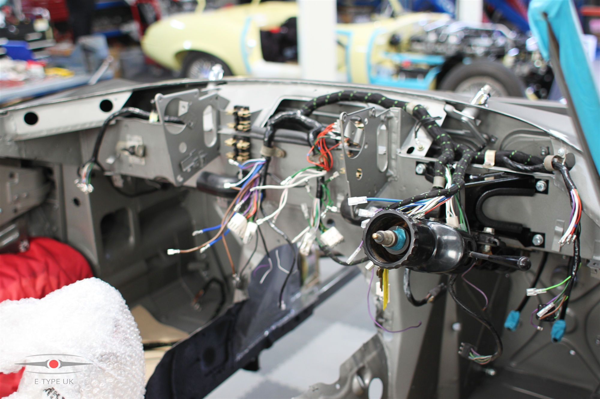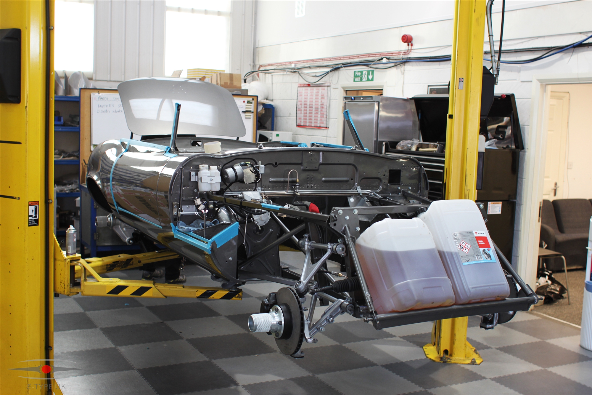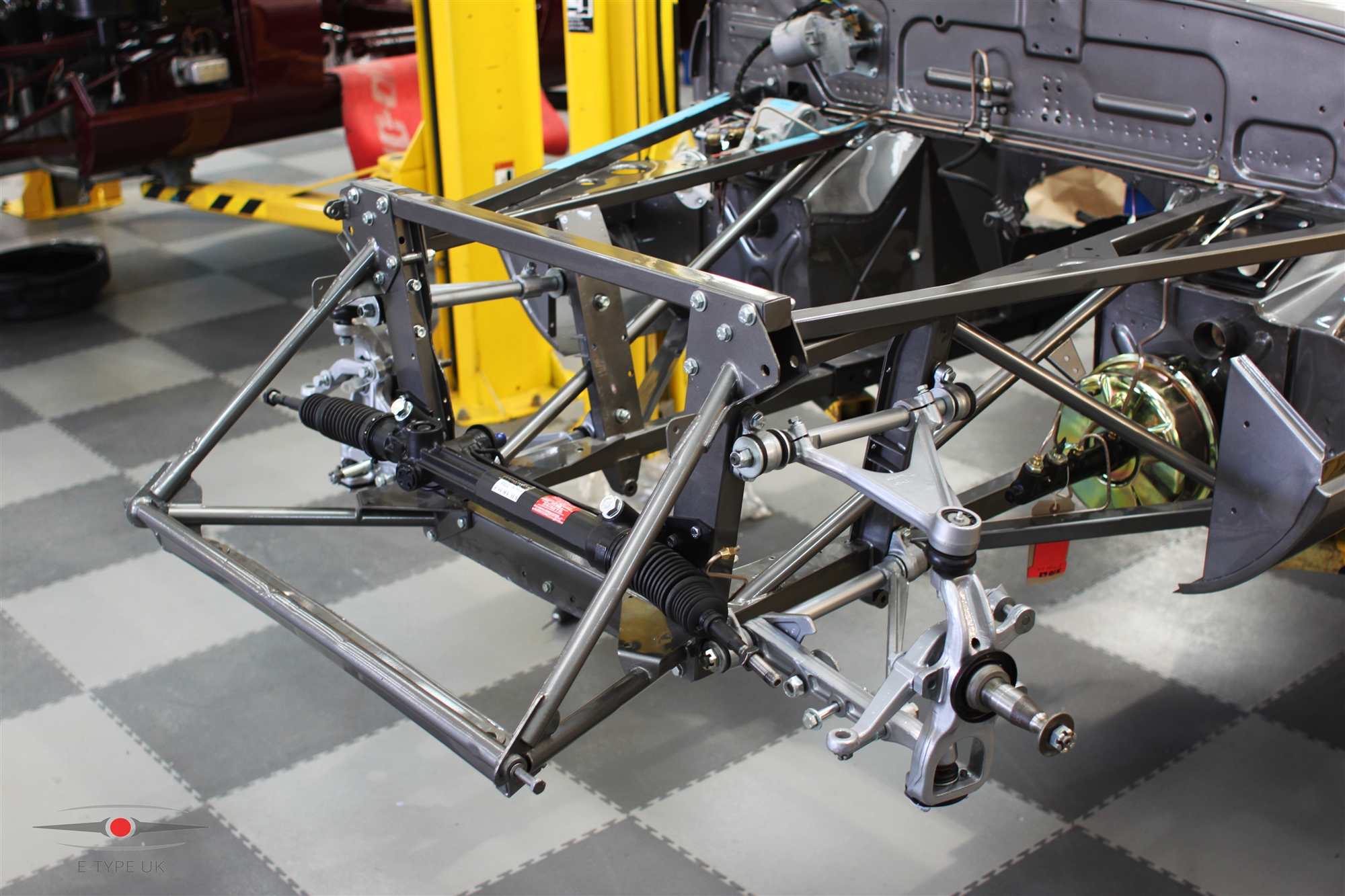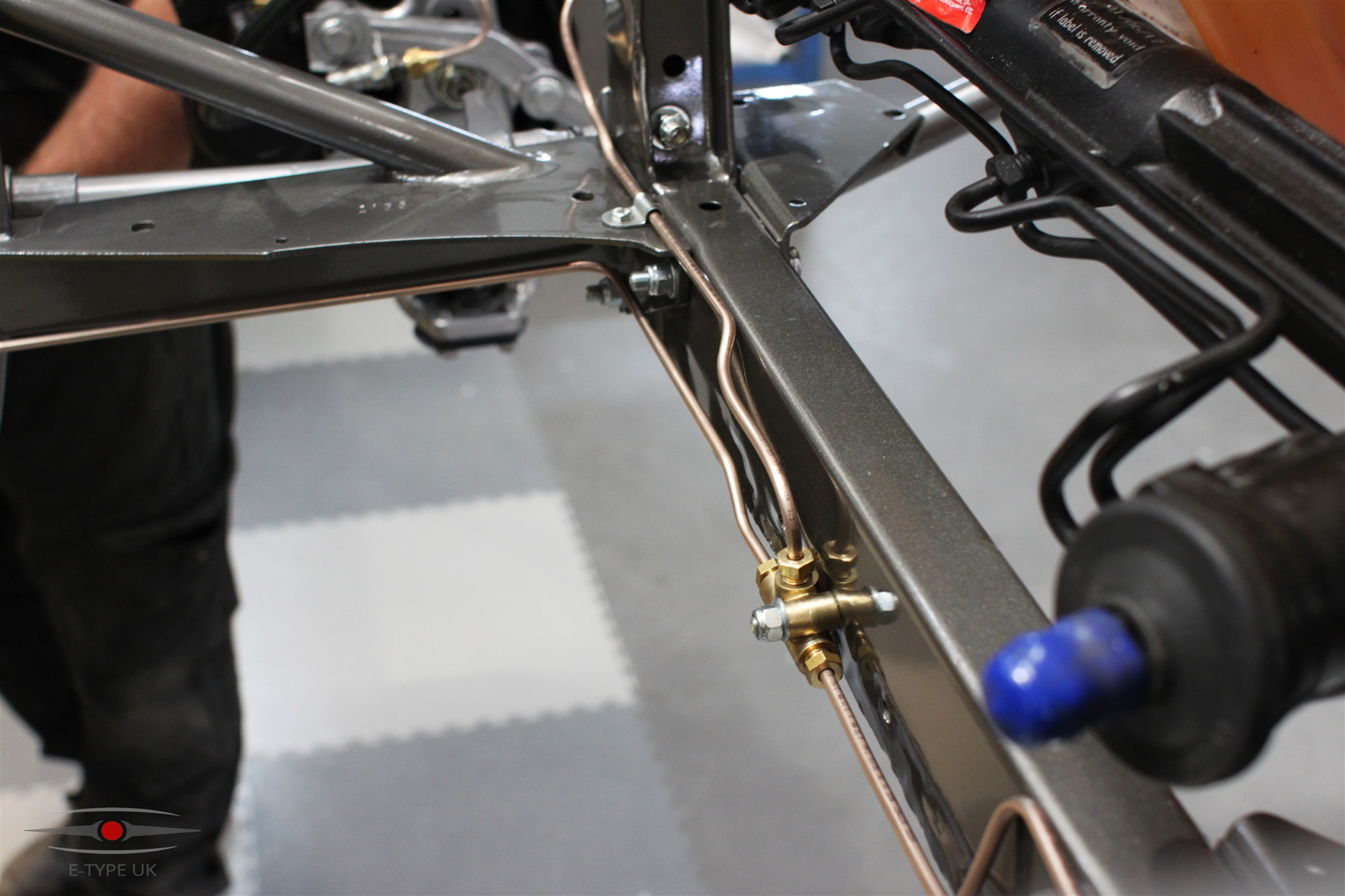 The mechanical build-up of an E-Type always begins with the front suspension assembly before the fully rebuilt rear end can be fitted and brakes plumbed in with hand-bent copper-nickel lines. The electrical loom is laid through the car from front to back before the interior electrics can be started on.