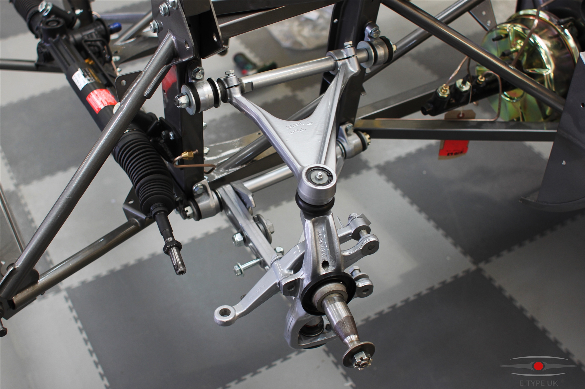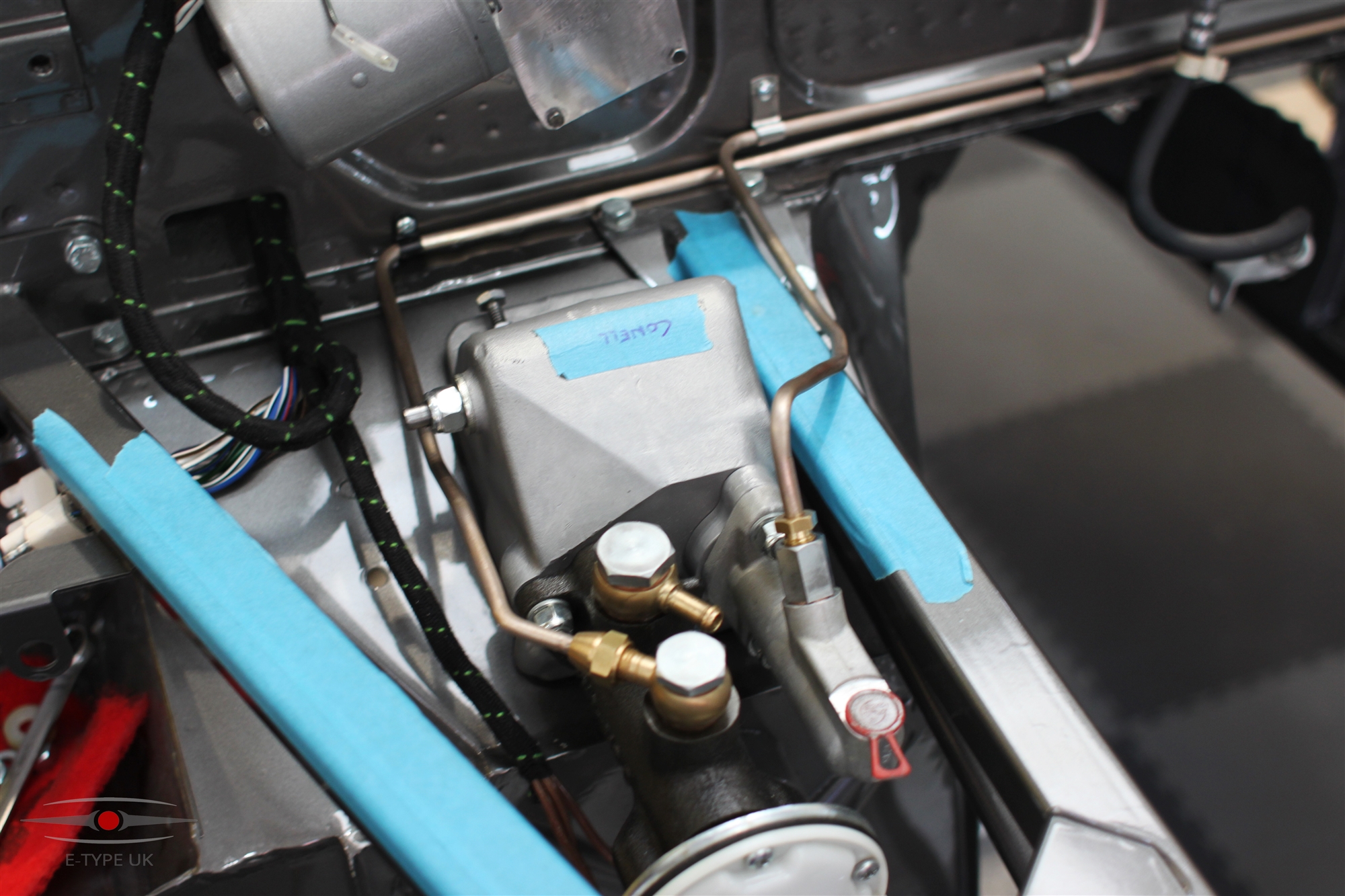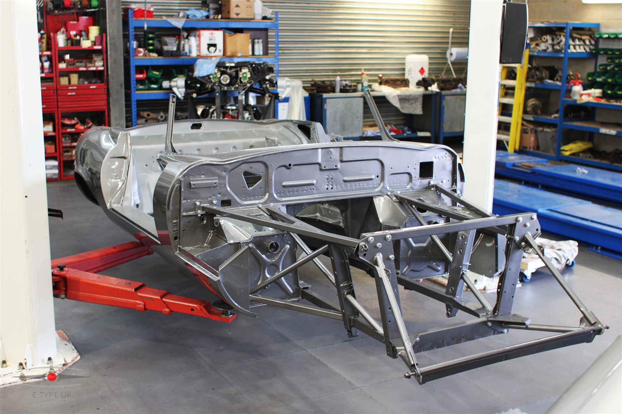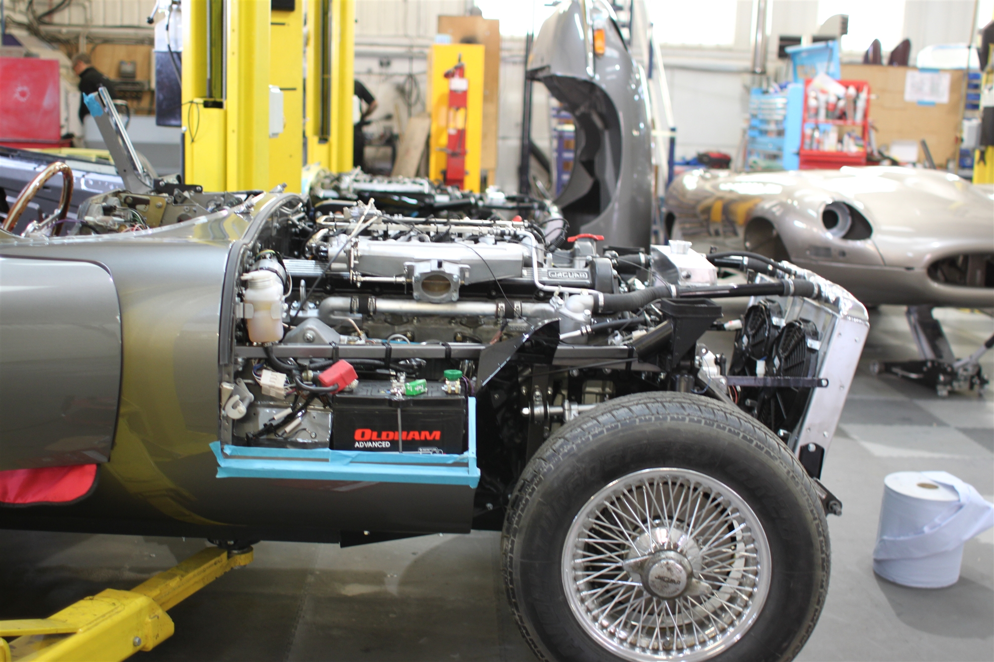 The mechanical build-up of an E-Type always begins with the front suspension assembly before the fully rebuilt rear end can be fitted and brakes plumbed in with hand-bent copper-nickel lines. The electrical loom is laid through the car from front to back before the interior electrics can be started on.