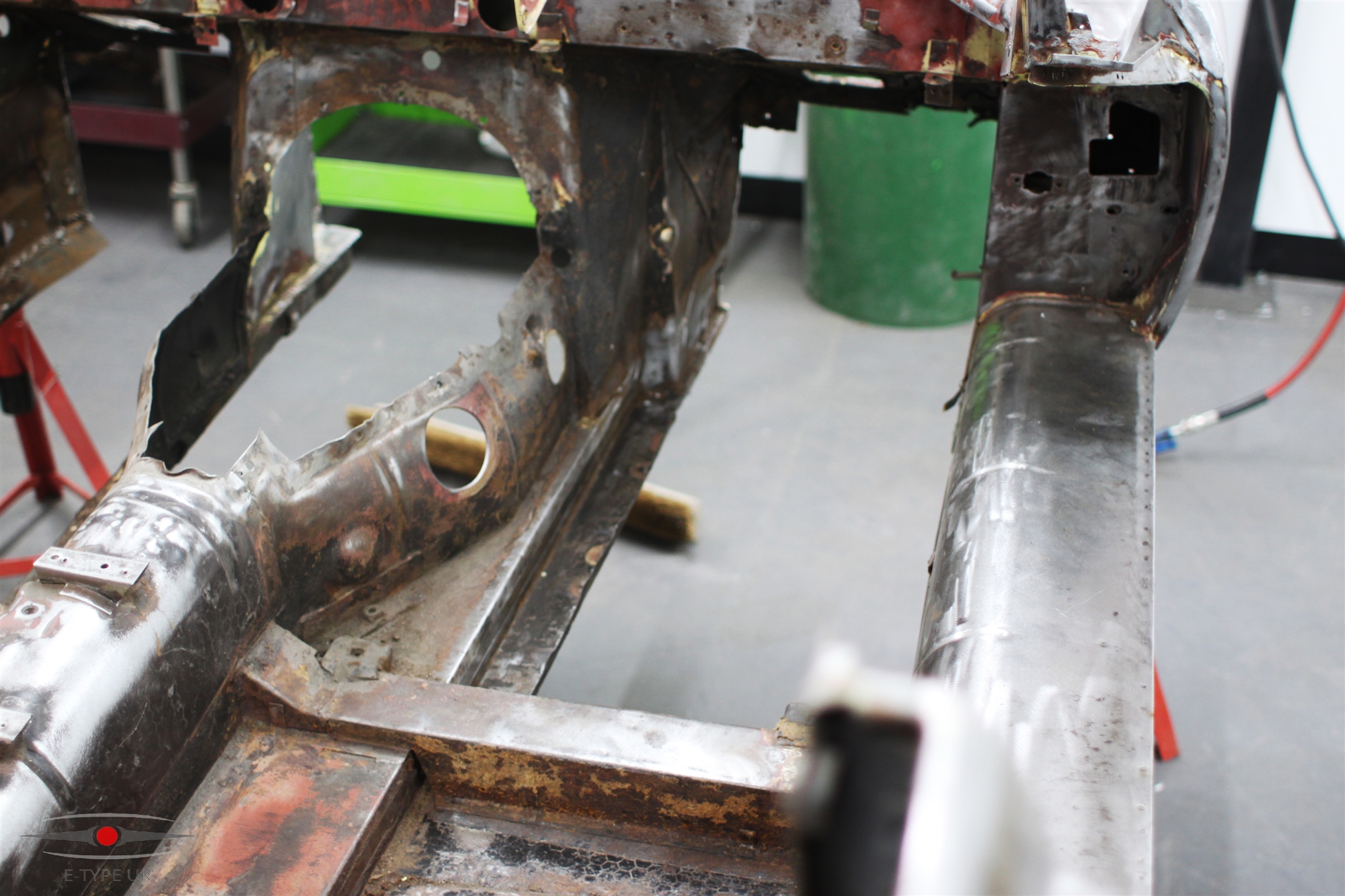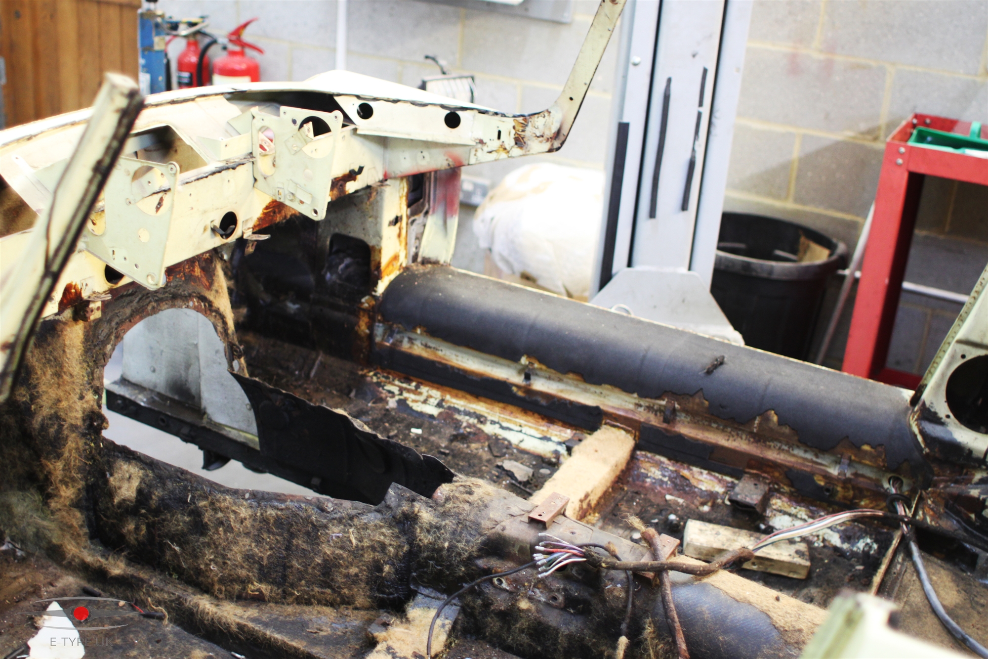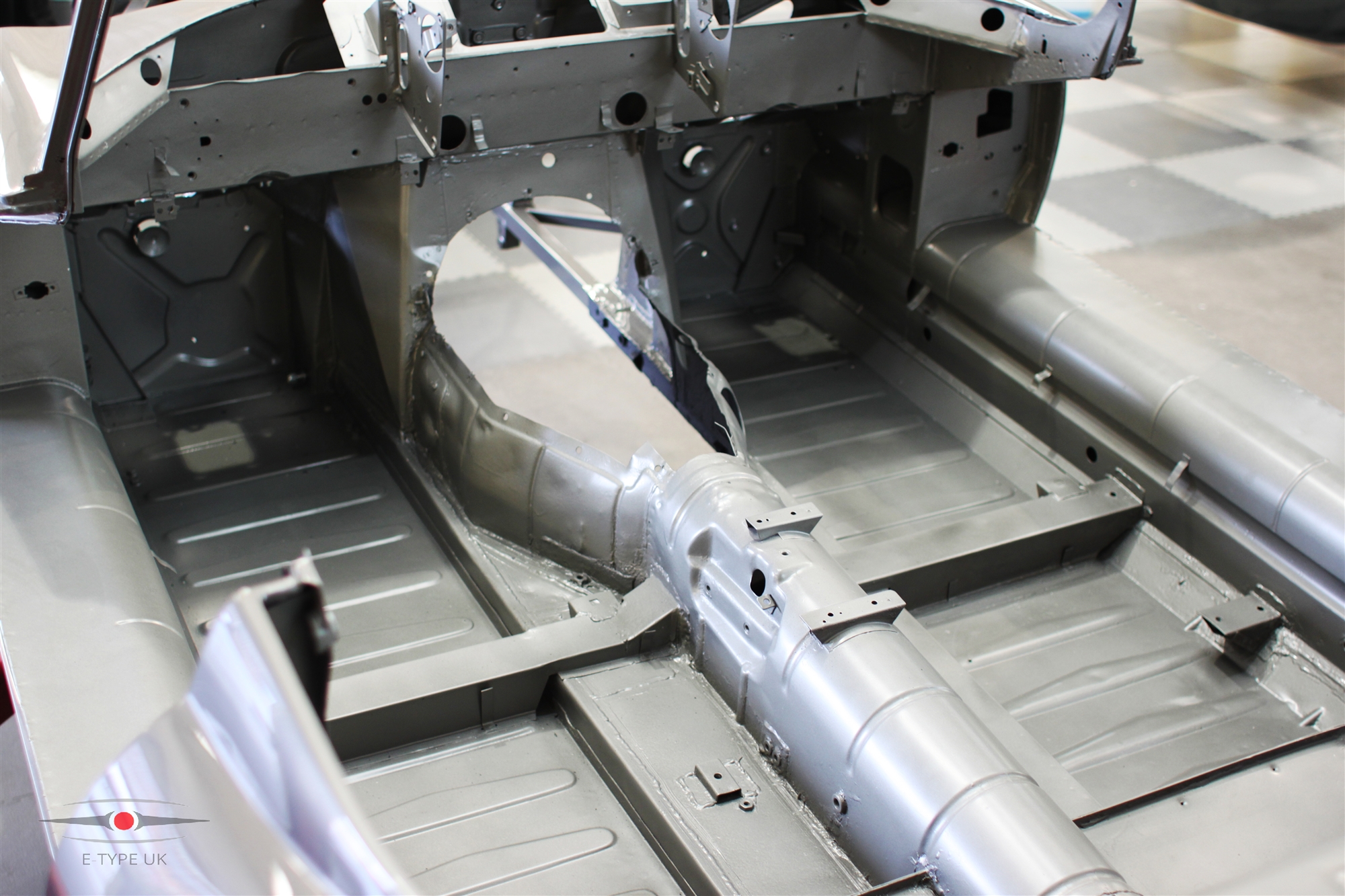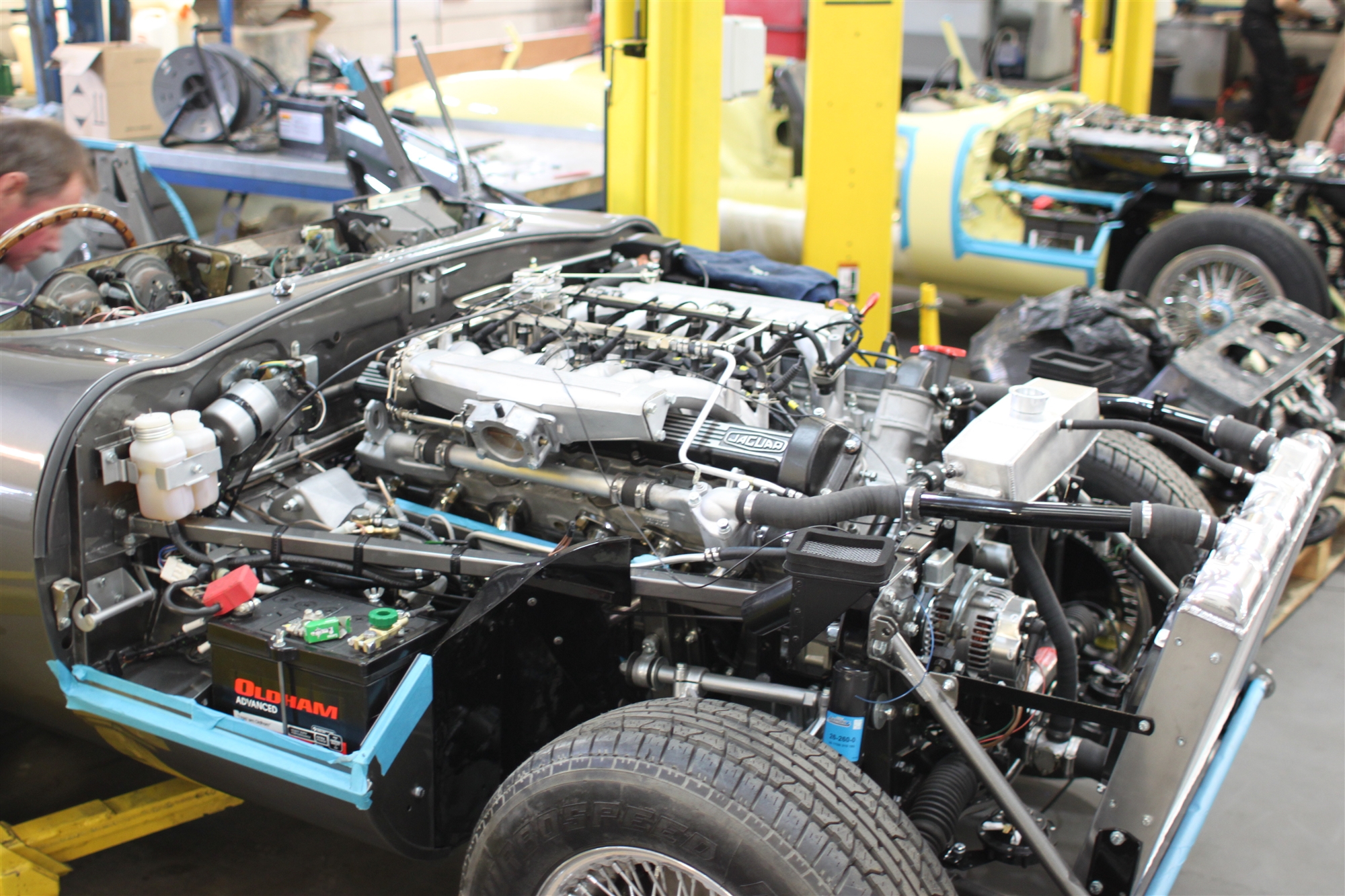 The mechanical build-up of an E-Type always begins with the front suspension assembly before the fully rebuilt rear end can be fitted and brakes plumbed in with hand-bent copper-nickel lines. The electrical loom is laid through the car from front to back before the interior electrics can be started on.