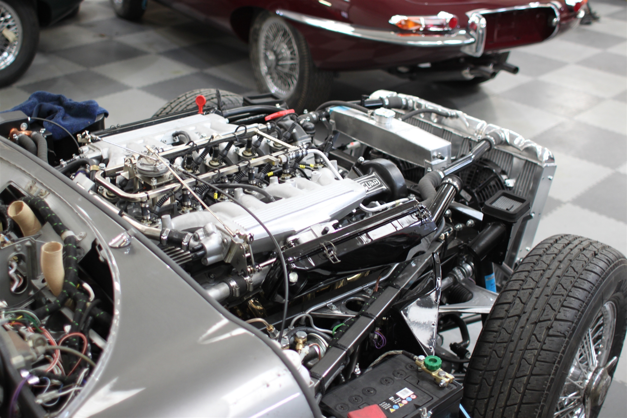 The original, and freshly rebuilt V12 has been fitted along with our 5-speed gearbox to further improve the touring aspect of the car. Many of the original parts of this E-Type have been reused in order to retain its provenance and history. This means the majority of the parts have been refurbished rather than completely restored as to keep the original feel and look whilst ensuring the car performs perfectly.