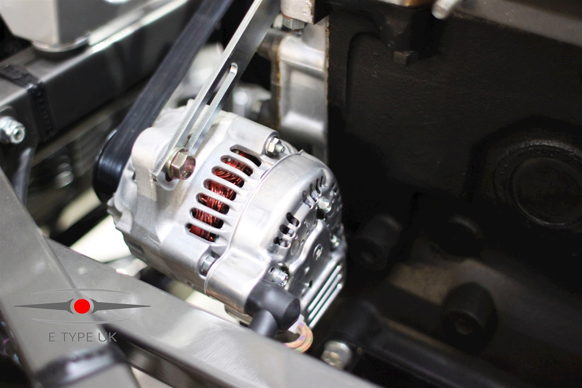 The lightweight alternator weighs just 4 kilos and is available in 45 or 100 amps options. Using a modern micro serpentine belt this option offers better grip which is highly resistant to throw-off. The kit is fitted with Aluminium pulleys and fits all XK engines.